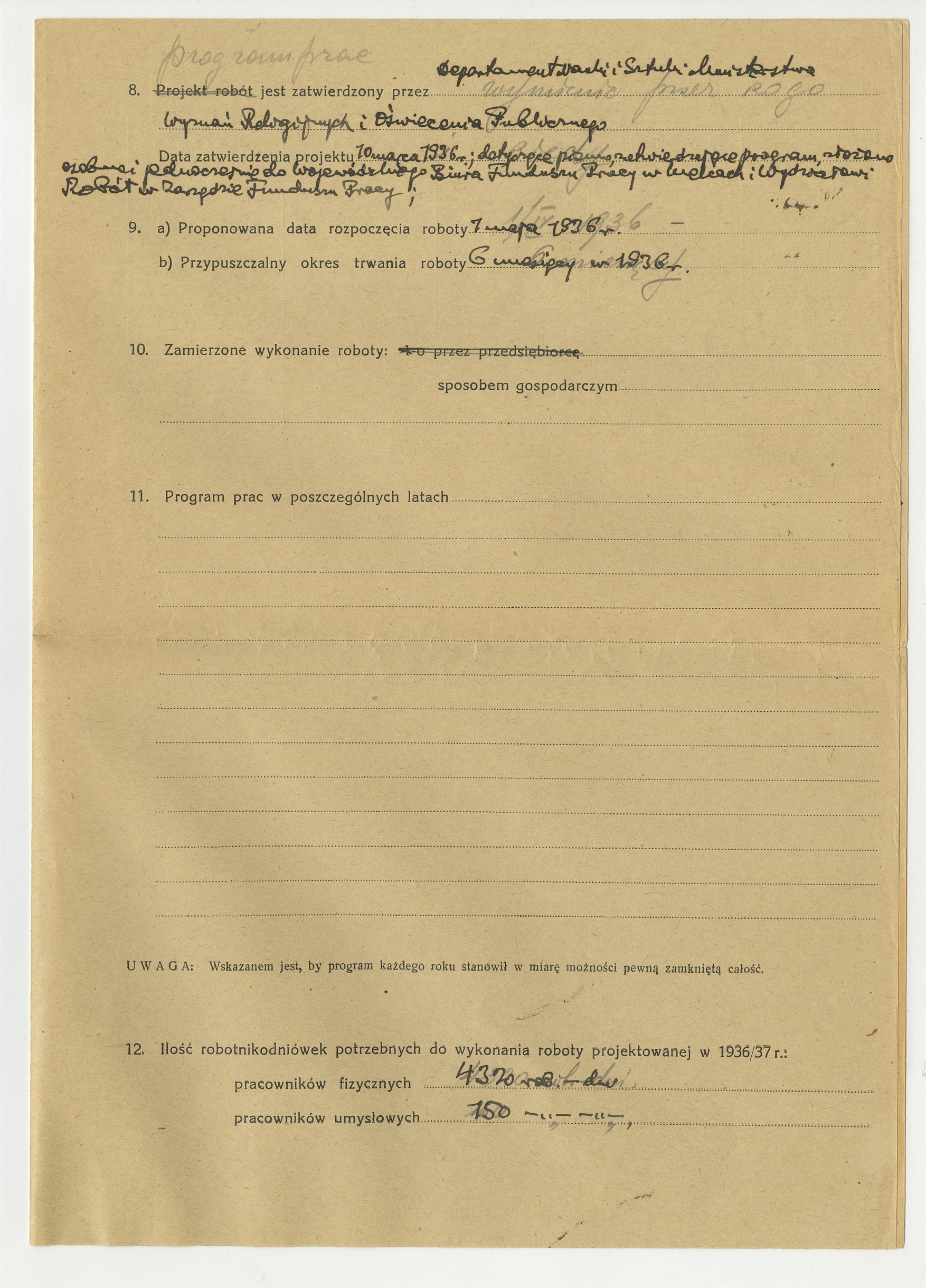 Druk - wniosek na udzielenie pożyczki z Funduszu Pracy częściowo uzupełniony reką S. Krukowskiego (cd)