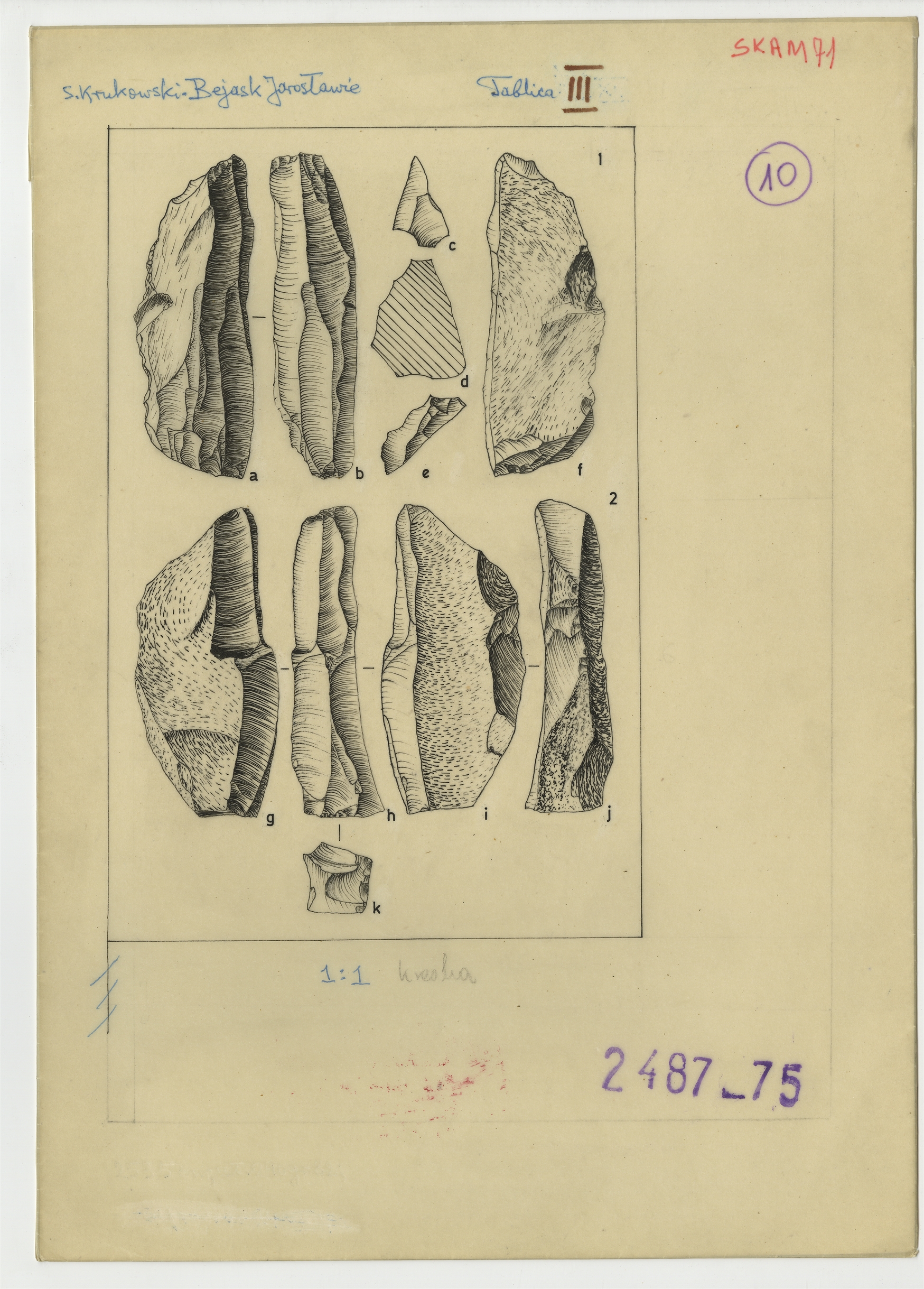 Ilustracje do "Skama 71" - Tablica III z rysunkami krzemieni tuszem na kalce zatytułowana: S. Krukowski "Bejask Jarosławie"