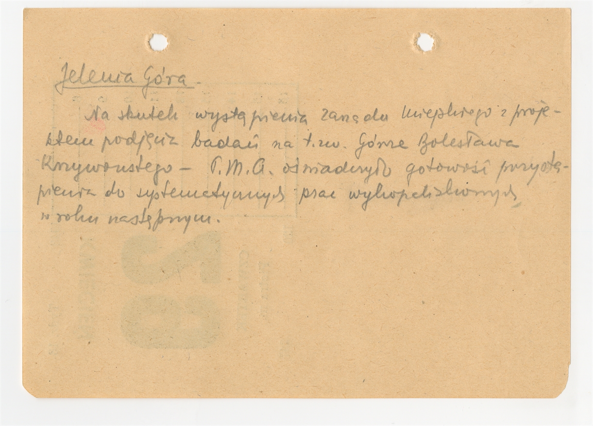 Karta "Jelenia Góra" (rękopis) z kartoteki Michała Drewki dotyczącej jego działalności konserwatorskiej - strona 1