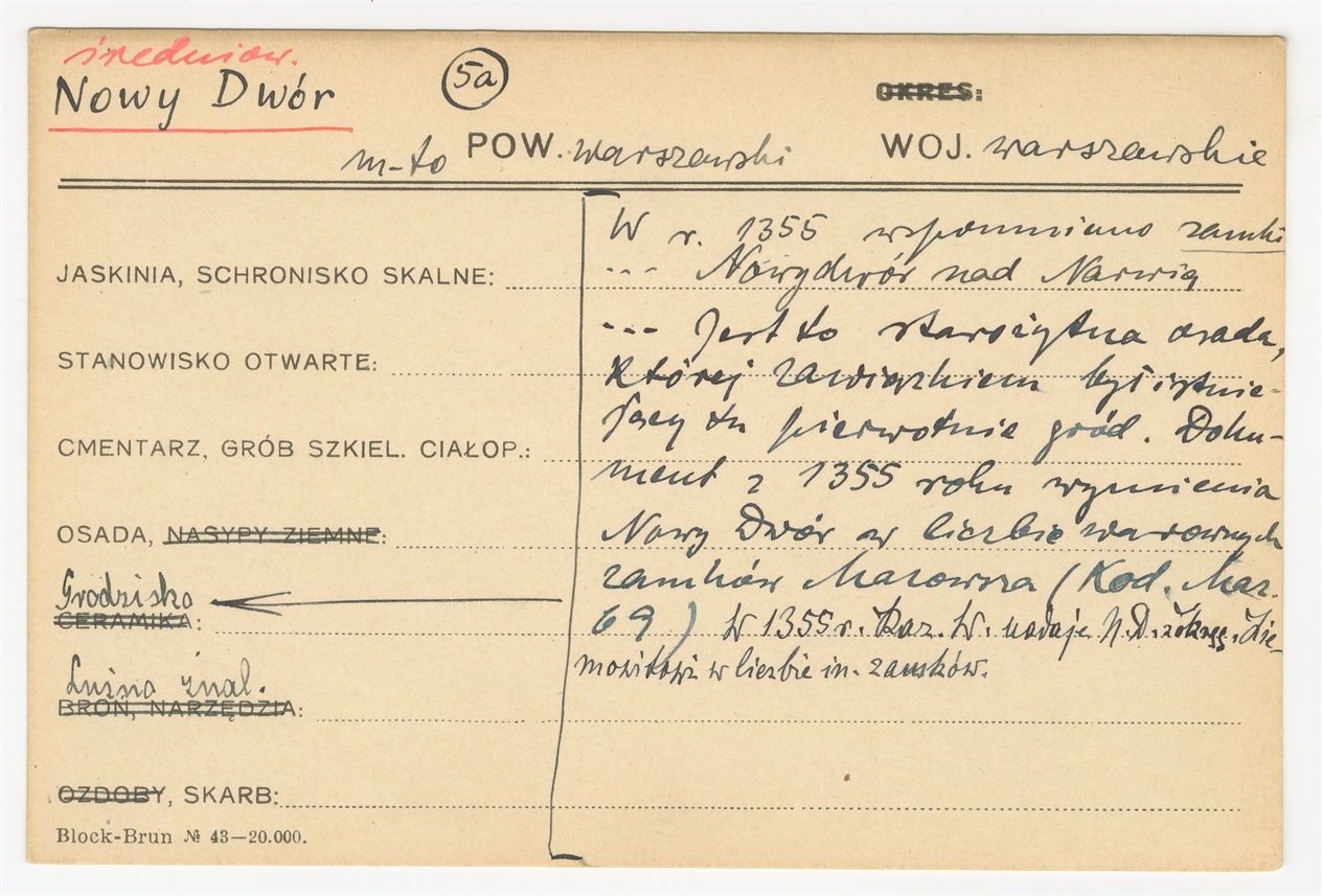 Karta stanowiska "Nowy Dwór m-to pow. warszawski woj. warszawskie