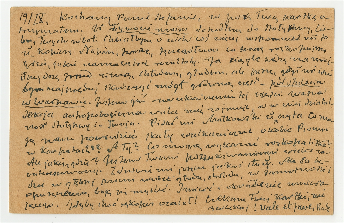 Kartka pocztowa od Ignacego Radlinskiego do Stefana Krukowskiego z dnia 19 IX [19]18 roku - rewers