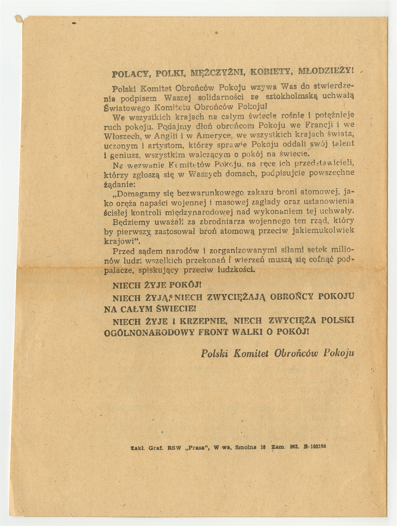 Manifest Polskiego Komitetu Obrońców Pokoju - strona 4: "Polacy Polki Mężczyźni Kobiety Młodzieży! (…)"