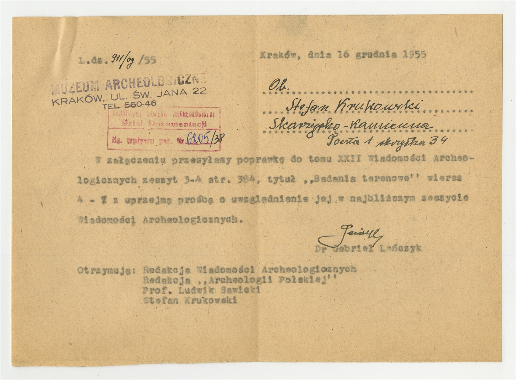 Maszynopis - list Gabriela Leńczyka do Stefana Krukowskiego z dnia 16 grudnia 1955 roku