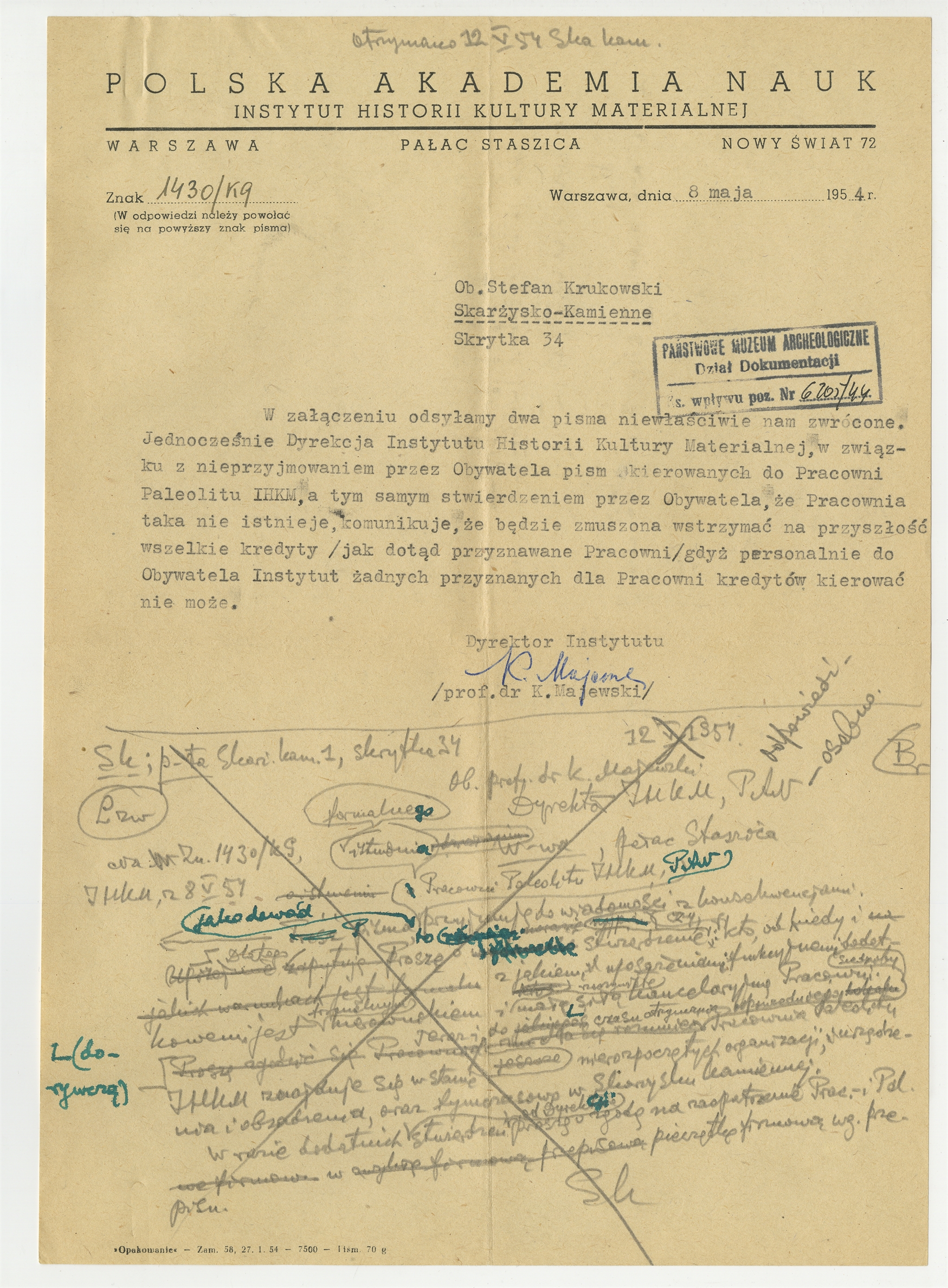 Maszynopis - list prof. dr. Kazimierza Majewskiego do Stefana Krukowskiego z dn. 8 V 1954 r.; Rękopis - brudnopis listu Stefana Krukowskiego do K. Majewskiego z dn. 8 V [19]54 r. (skreślony)