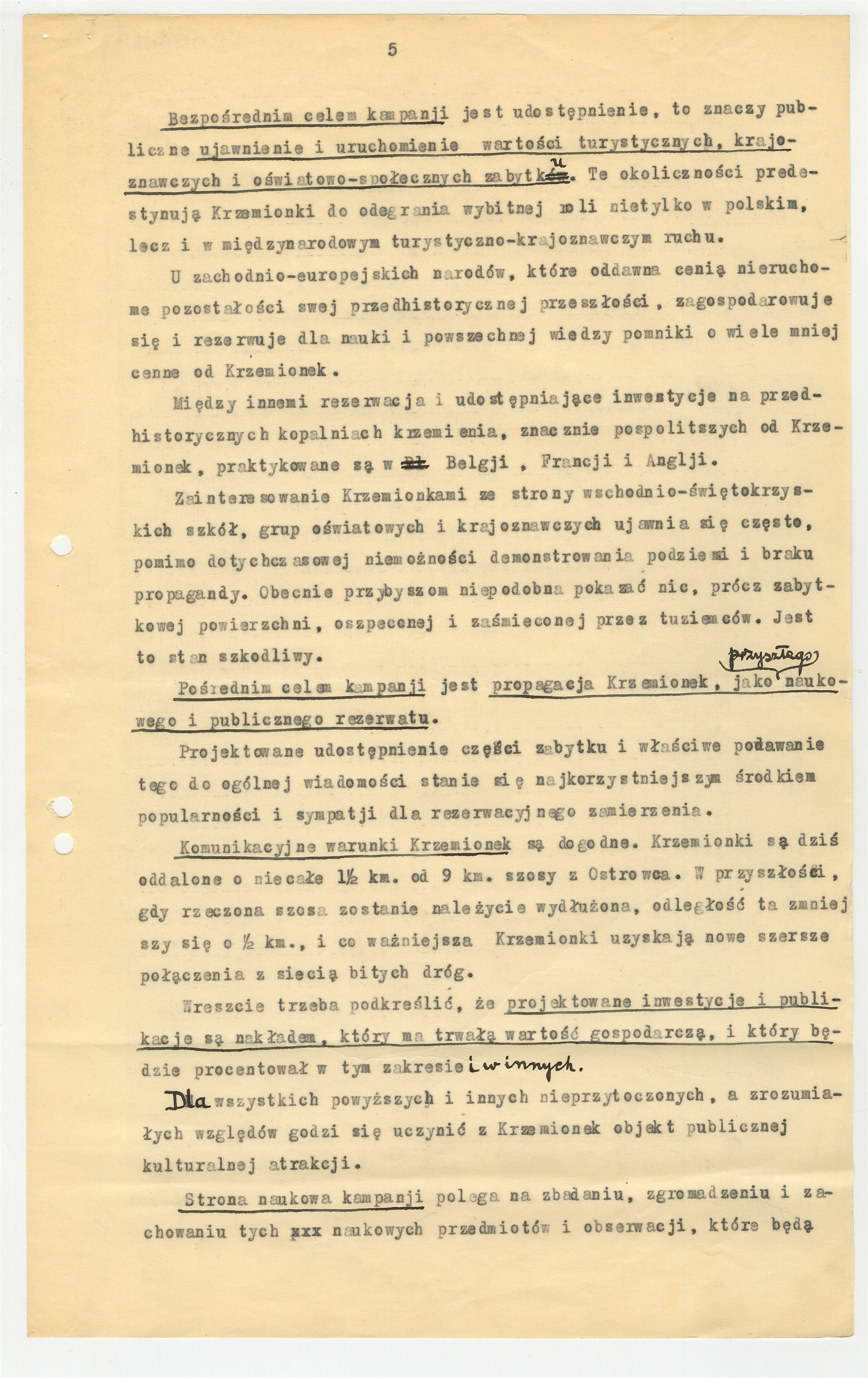 Maszynopis - "Memorjał w sprawie inwestycji i badań naukowych na przedhistorycznej kopalni Krzemionki" Stefana Krukowskiego z dnia 12 kwietnia do Zarządu Głównego S.A. Starachowickich Zakładów Górniczych. Strona 5
