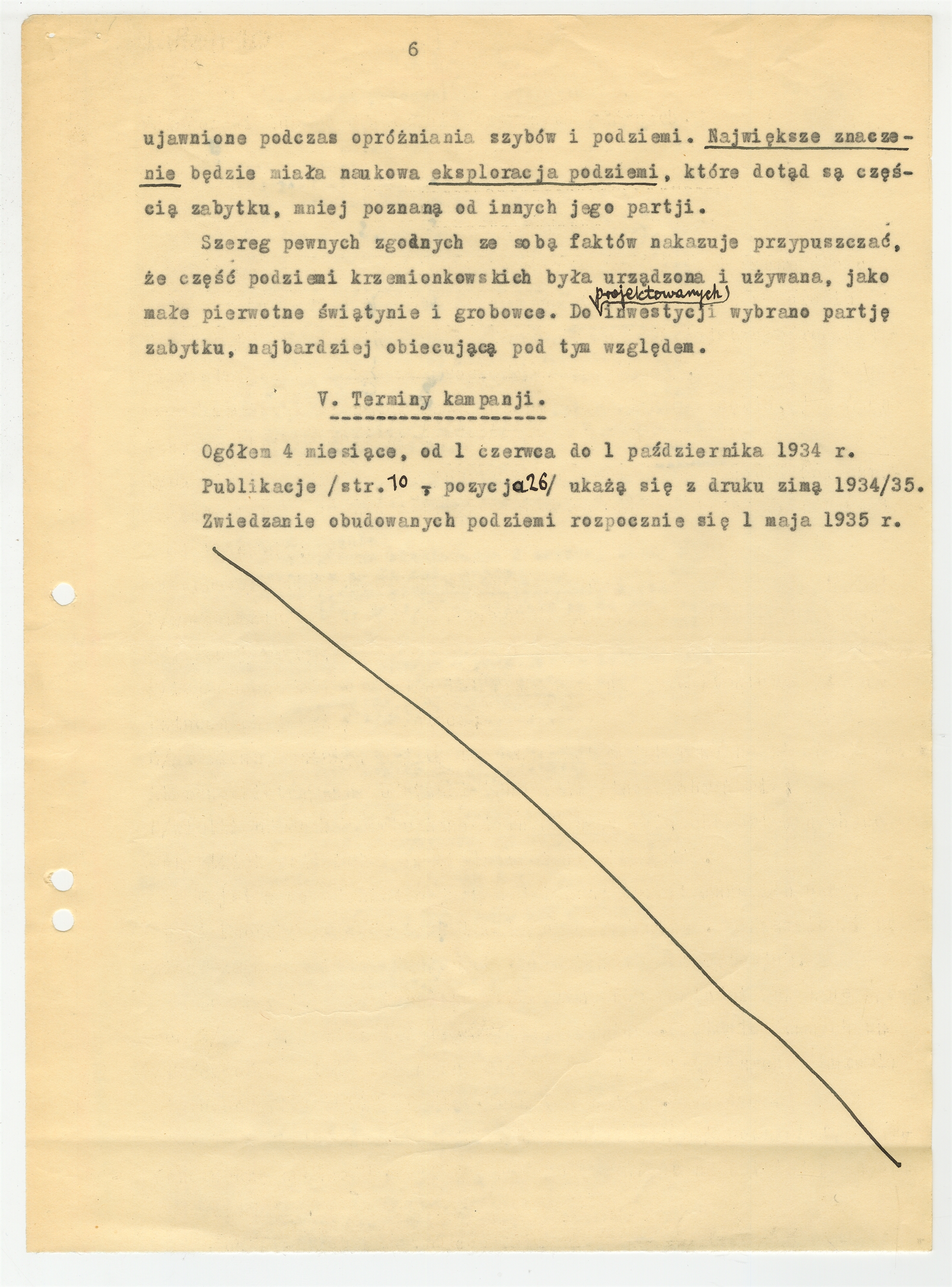 Maszynopis - "Memorjał w sprawie inwestycji i badań naukowych na przedhistorycznej kopalni Krzemionki" Stefana Krukowskiego z dnia 12 kwietnia do Zarządu Głównego S.A. Starachowickich Zakładów Górniczych. Strona 6