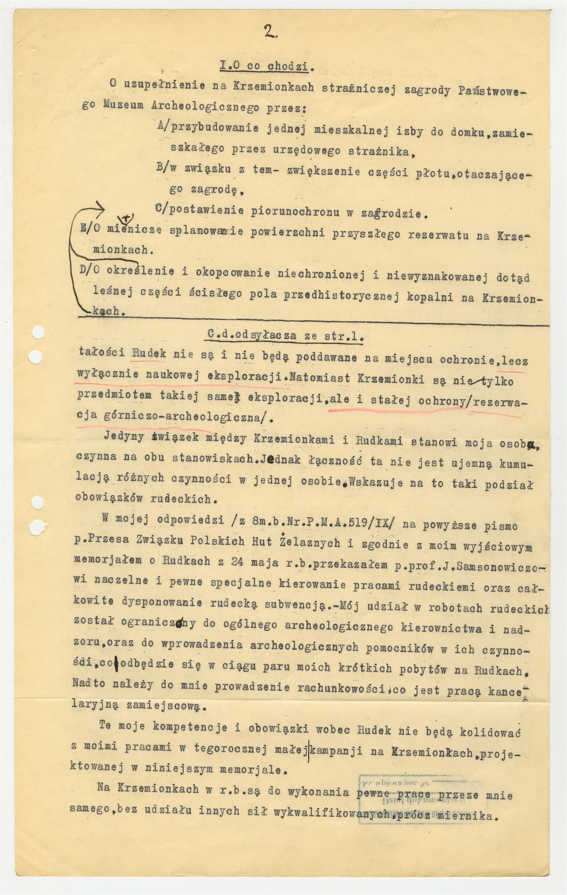 Maszynopis - "Memorjał w sprawie subsydjowania małych robót na Krzemionkach" Stefana Krukowskiego z dnia 20 lipca 1933 do C. Klarnera Pezesa Zarządu Głównego S.A. Starachowickich Zakładów Górniczych. Strona 2