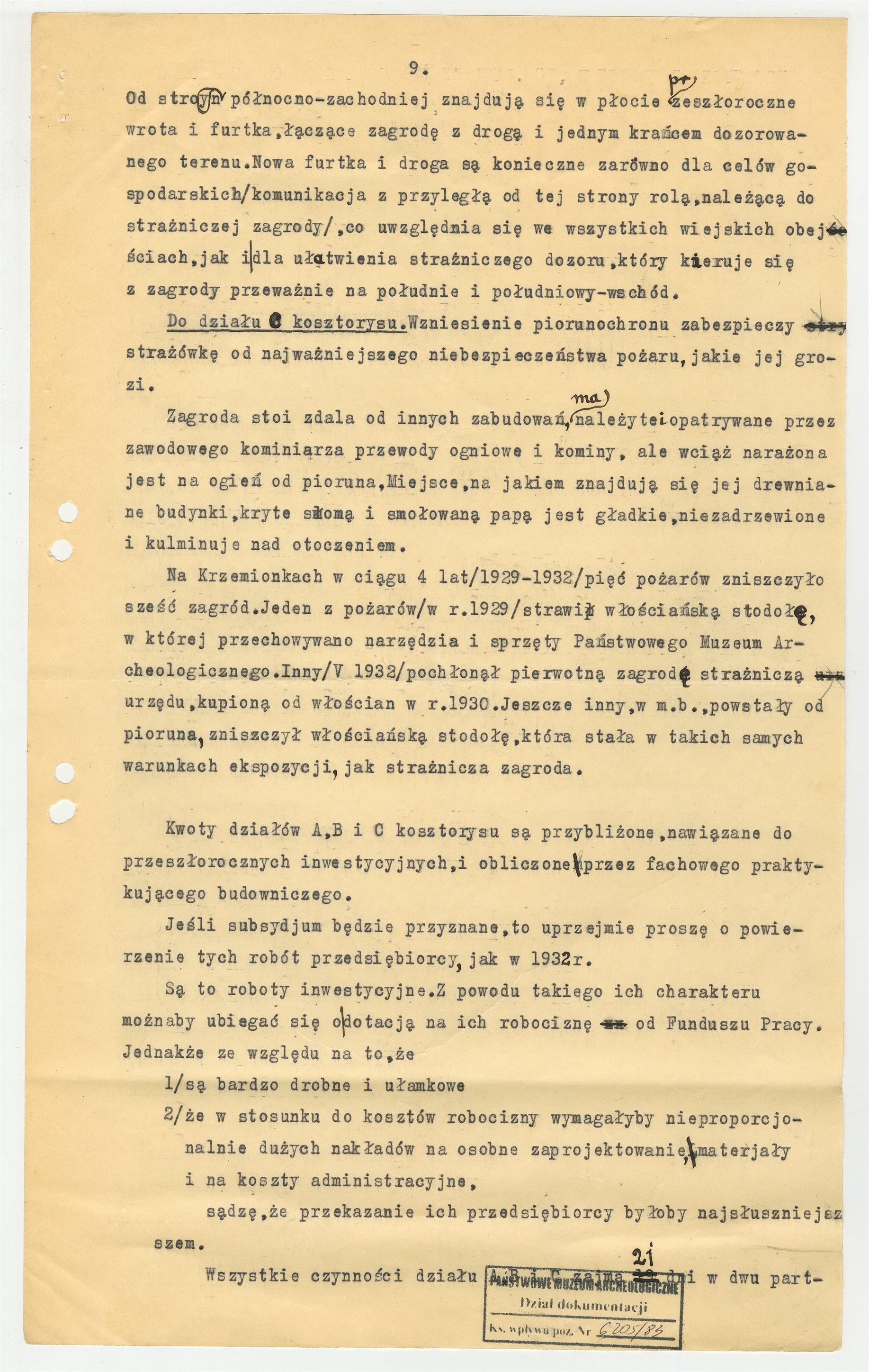 Maszynopis - "Memorjał w sprawie subsydjowania małych robót na Krzemionkach" Stefana Krukowskiego z dnia 20 lipca 1933 do C. Klarnera Pezesa Zarządu Głównego S.A. Starachowickich Zakładów Górniczych. Strona 9