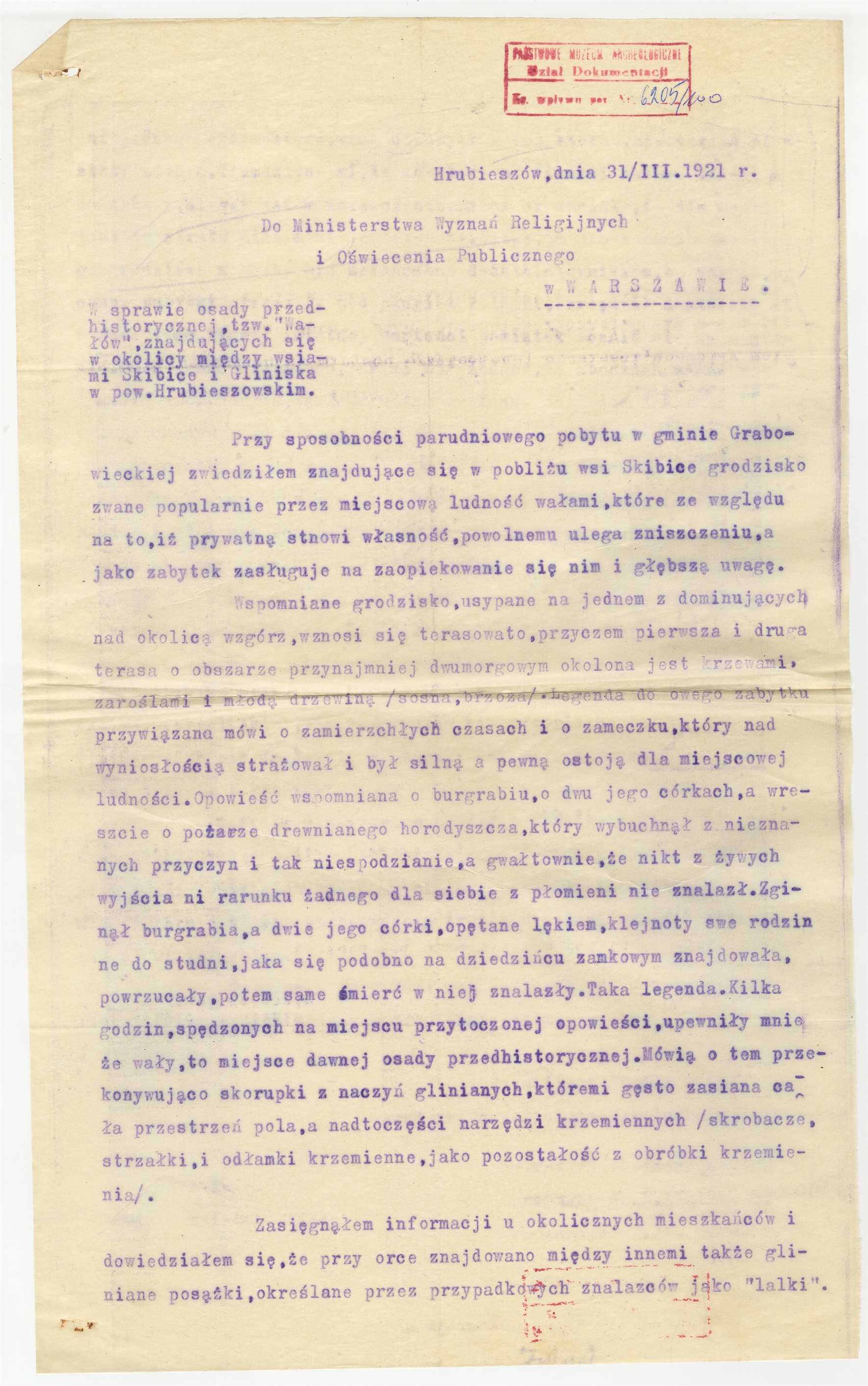Maszynopis - odpis listu Stefana Kowaliszyna do Ministerstwa Wyznań religijnych i Oświecenia Publicznego z dnia 31 III 1921 roku