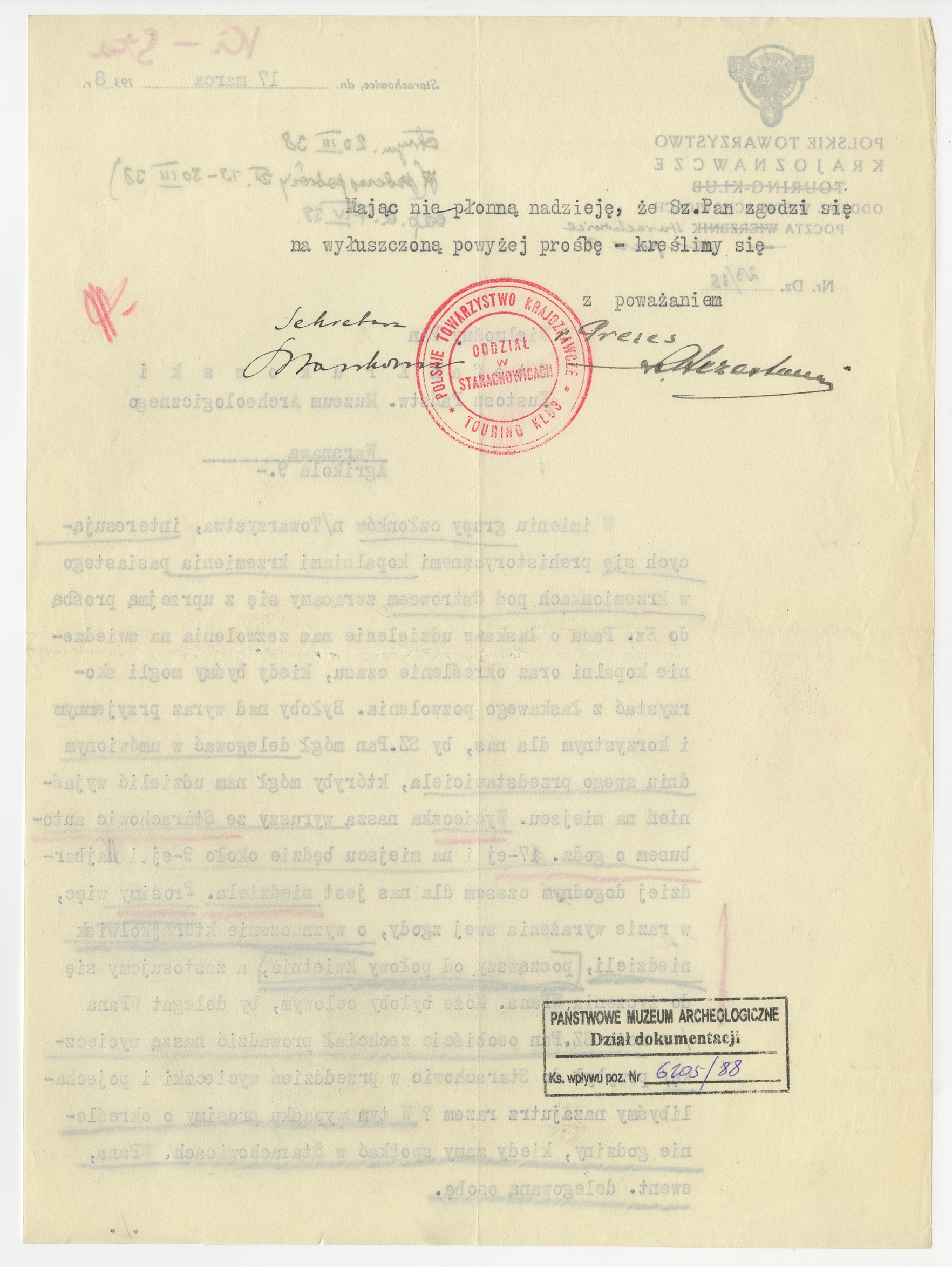 Maszynopis pisma Polskiego Towarzystwa Krajoznawczego Oddział w Starachowicach do Stefana Krukowskiego Kustosza PMA z prośbą o zgodę na zwiedzenie kopalni krzemienia pasiastego w Krzemionkach Starachowice 17 marca 1938 r. (nr pisma 23/38) - strona 2: "(...) Mając niepłonną nadzieję (...)"