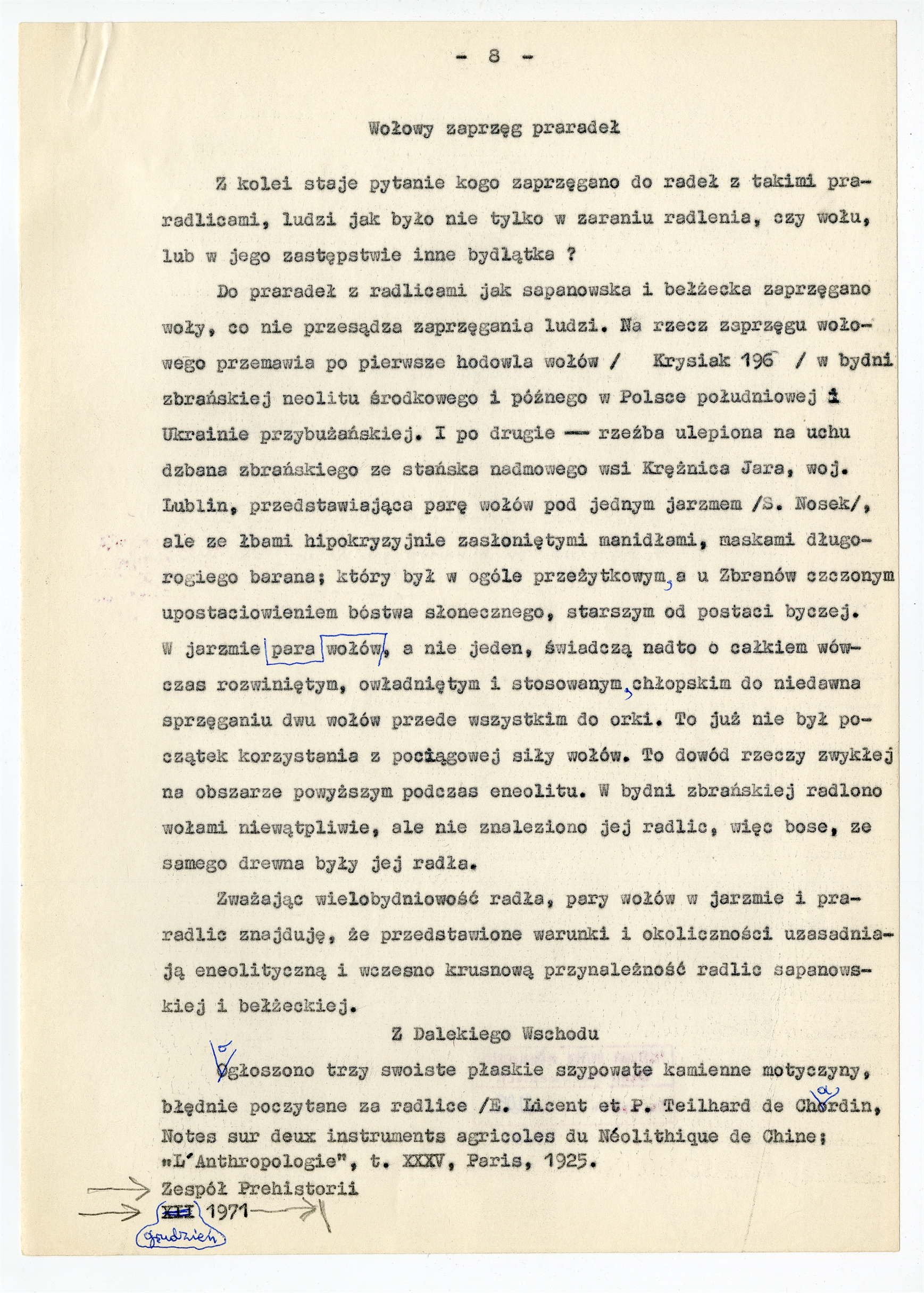 Maszynopis pracy prof. Stefana Krukowskiego pt.: Do praradlic.; Egzemplarz drugi - Wołowy zaprzęg praradeł