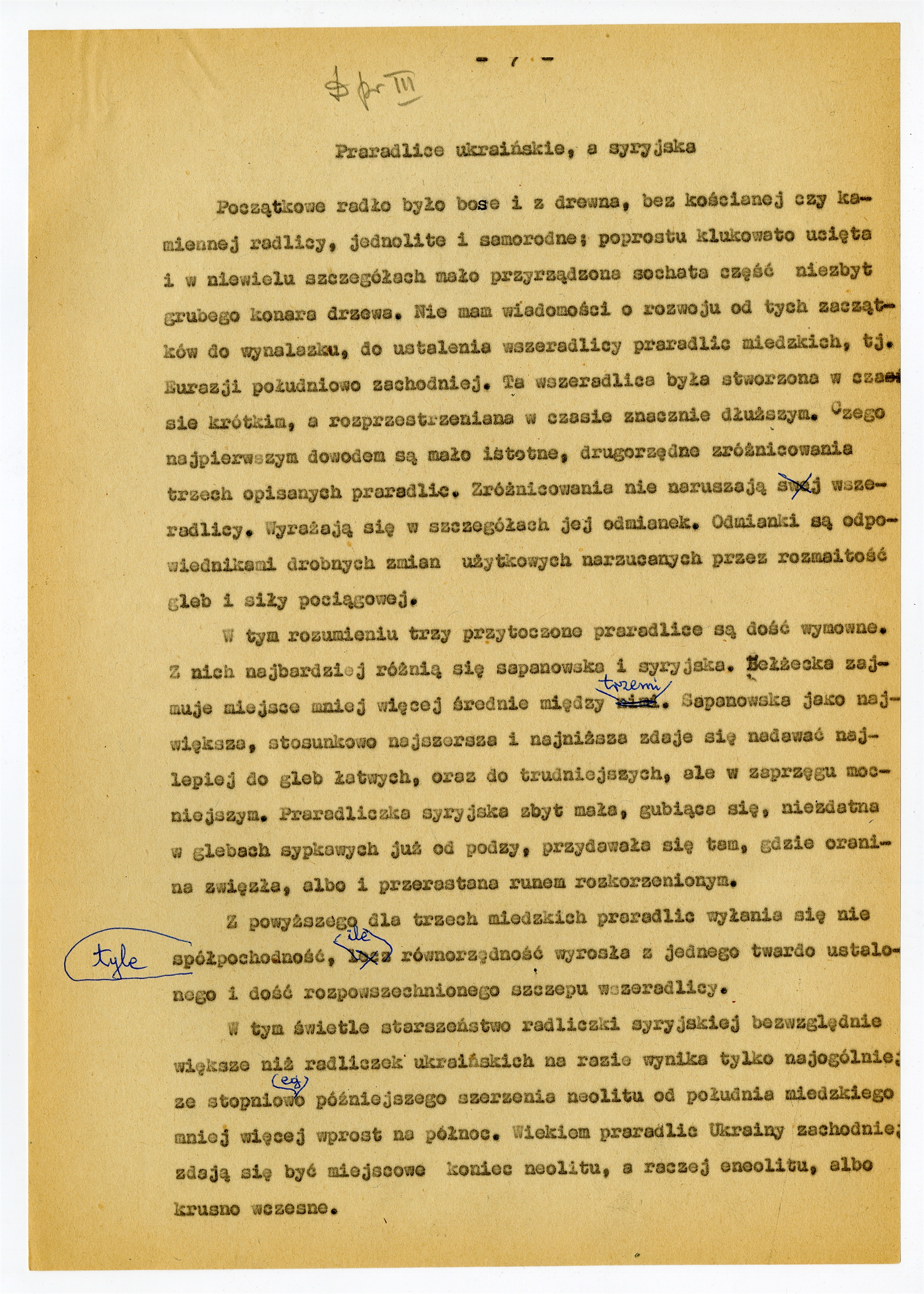 Maszynopis pracy prof. Stefana Krukowskiego pt.: Do praradlic.; Egzemplarz trzeci - Praradlice ukraińskie a syryjska