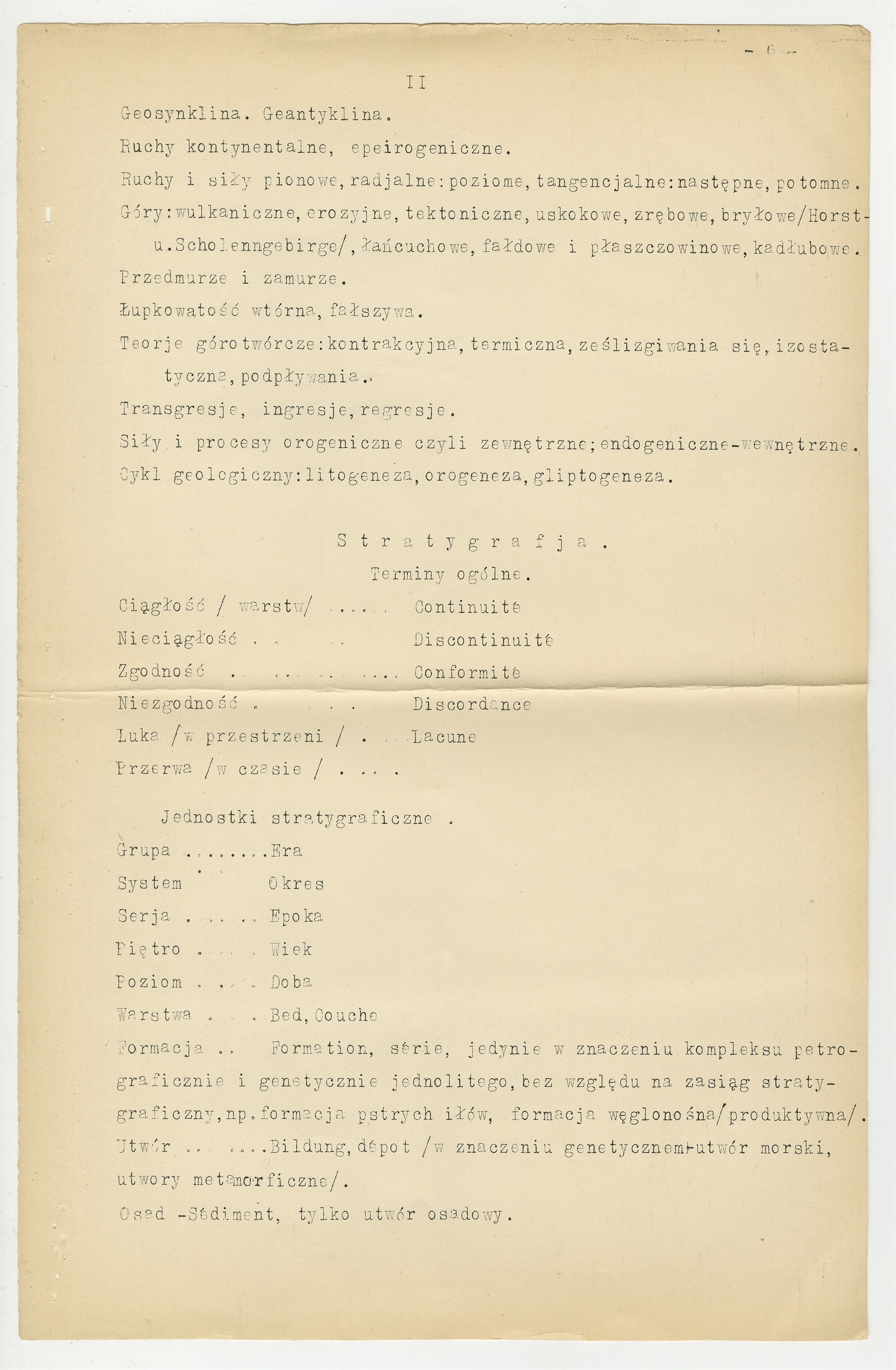 Maszynopis projektu zatytułowanego "Słownictwo Geologiczne i Paleontologiczne" przysłany do prof. Stefana Krukowskiego z Komisji do Spraw Słownictwa Geologicznego i Paleontologicznego; Rozdział: Stratygrafja