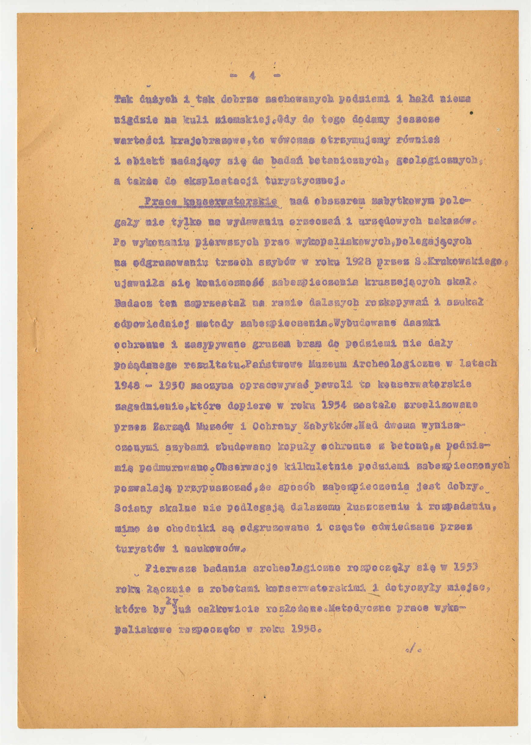 Maszynopis - referat Tadeusza Żurowskiego pt.: "Krzemionki Opatowskie - pomnik starodawnego górnictwa" z konferencji naukowej w Kielcach 28 V 1960 roku - strona 4