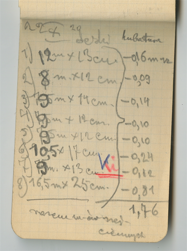 Notes z odręcznymi notatkami Stefana Krukowskiego - strona 10: "deski kubatura (…)" 22 X [19]29