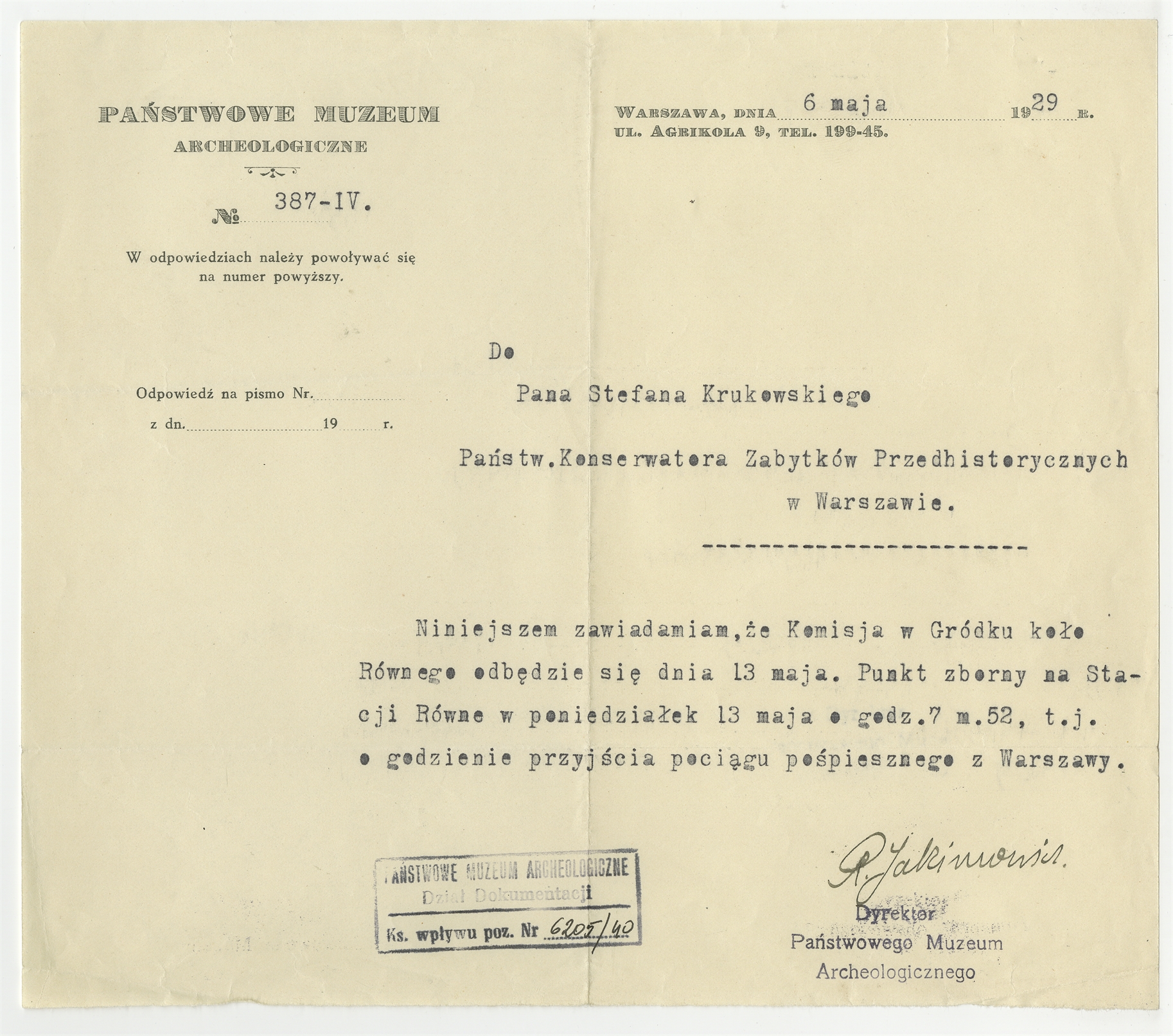 Pismo z dnia 6 maja [19]29 z PMA do prof. Stefana Krukowskiego