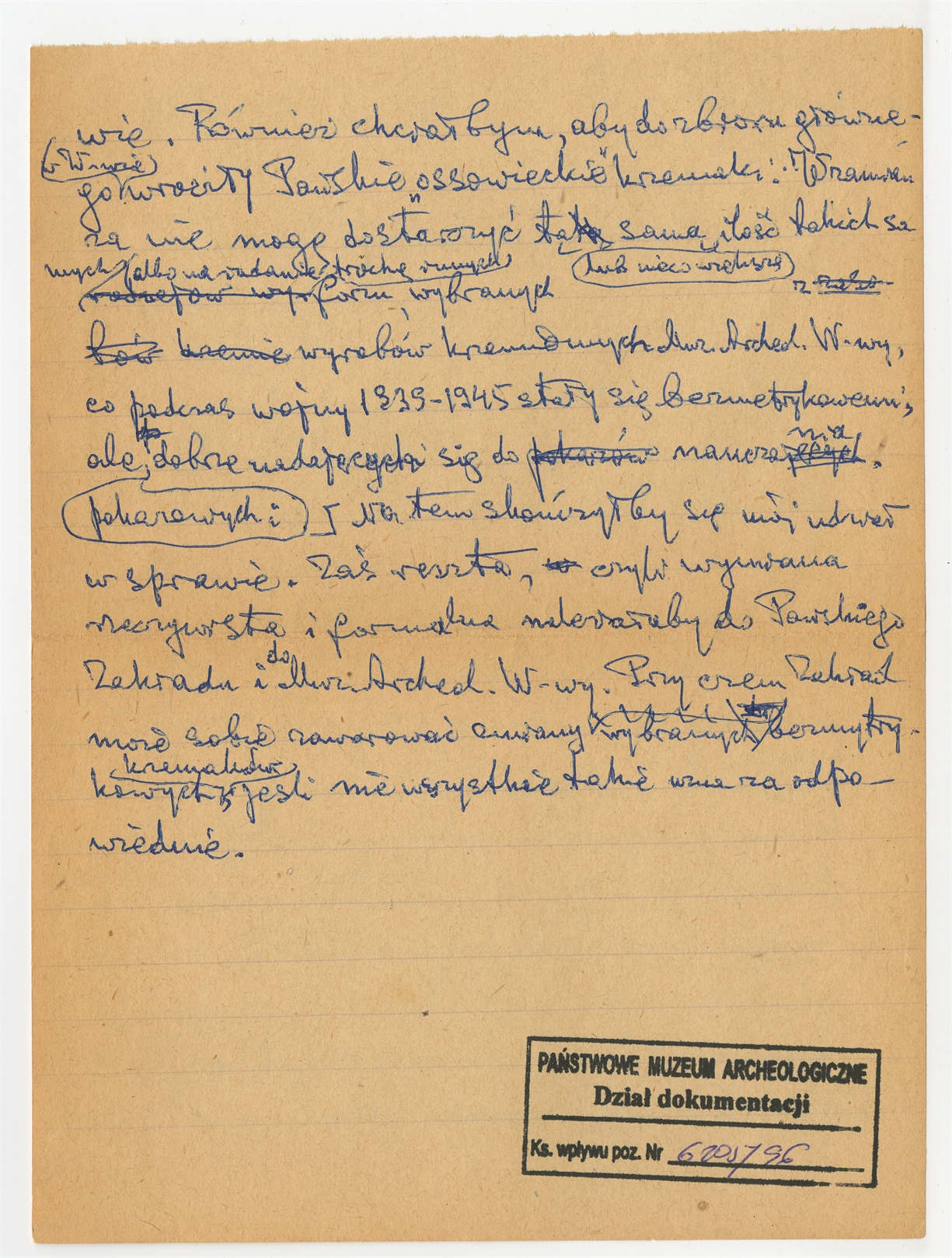 Rękopis-brudnopis listu prof. Stefana Krukowskiego z dnia 22 I [19]68 napisanego do prof. dr R. Jamki kierownika Katedry Archeologii Polski na U.J. w Krakowie (cd)