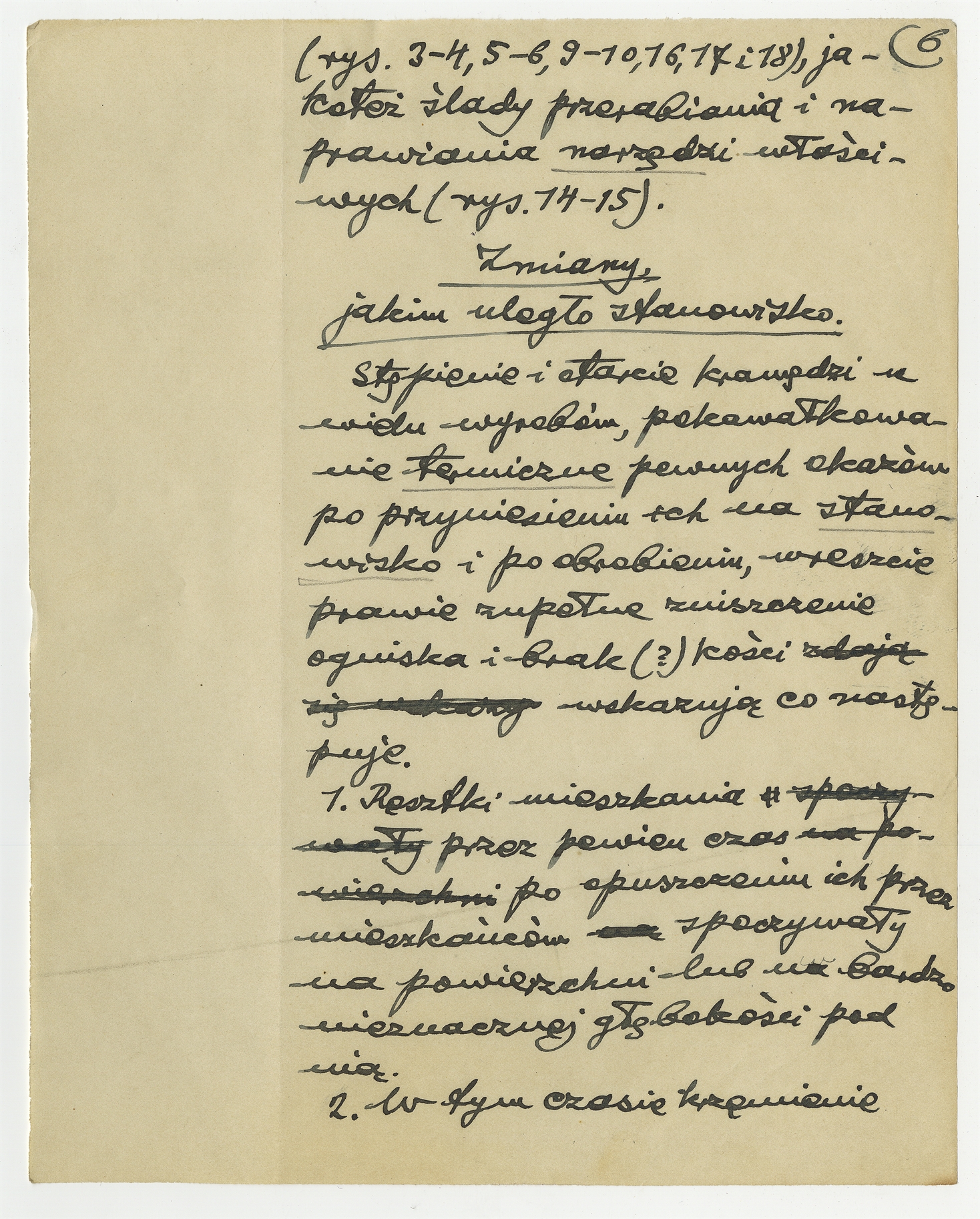 Rękopis części pracy zatytułowanej "II. Część prahistoryczna" wchodzącej w skład opracowania S. Krukowskiego oraz J. Polańkiego pt. "Pierwsze stanowisko paleolityczne w Nowosiółce Kostiukowej (Podole)" - strona 6: "Typ stanowiska" c.d. "Zmiany jakim uległo stanowisko"