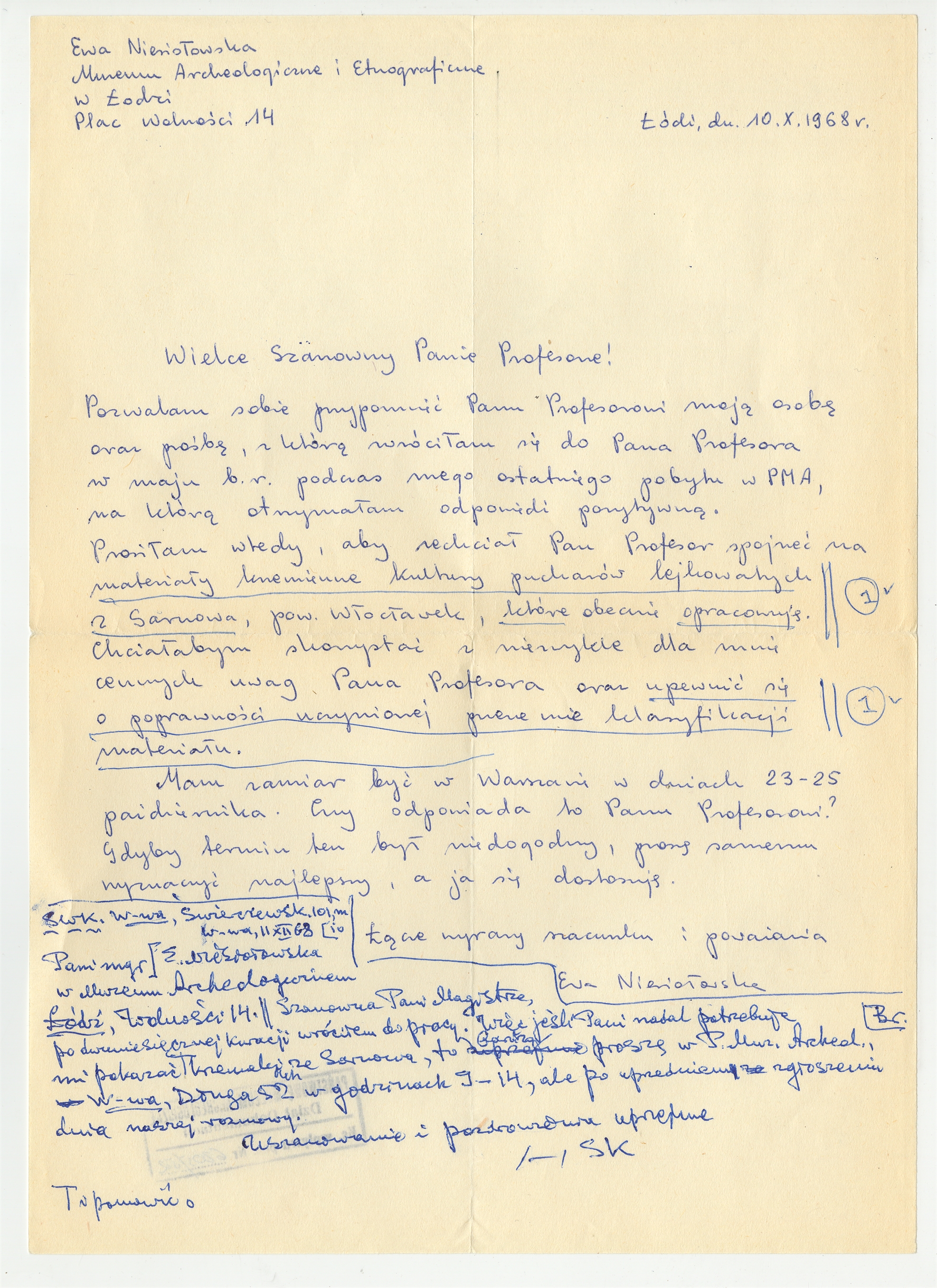 Rękopis - list Ewy Niesiołowskiej do Stefana Krukowskiego z dnia 10 X 1968 roku. Na jej samej stronie rekopis - brudnopis odpowiedzi Stefana Krukowskiego na list