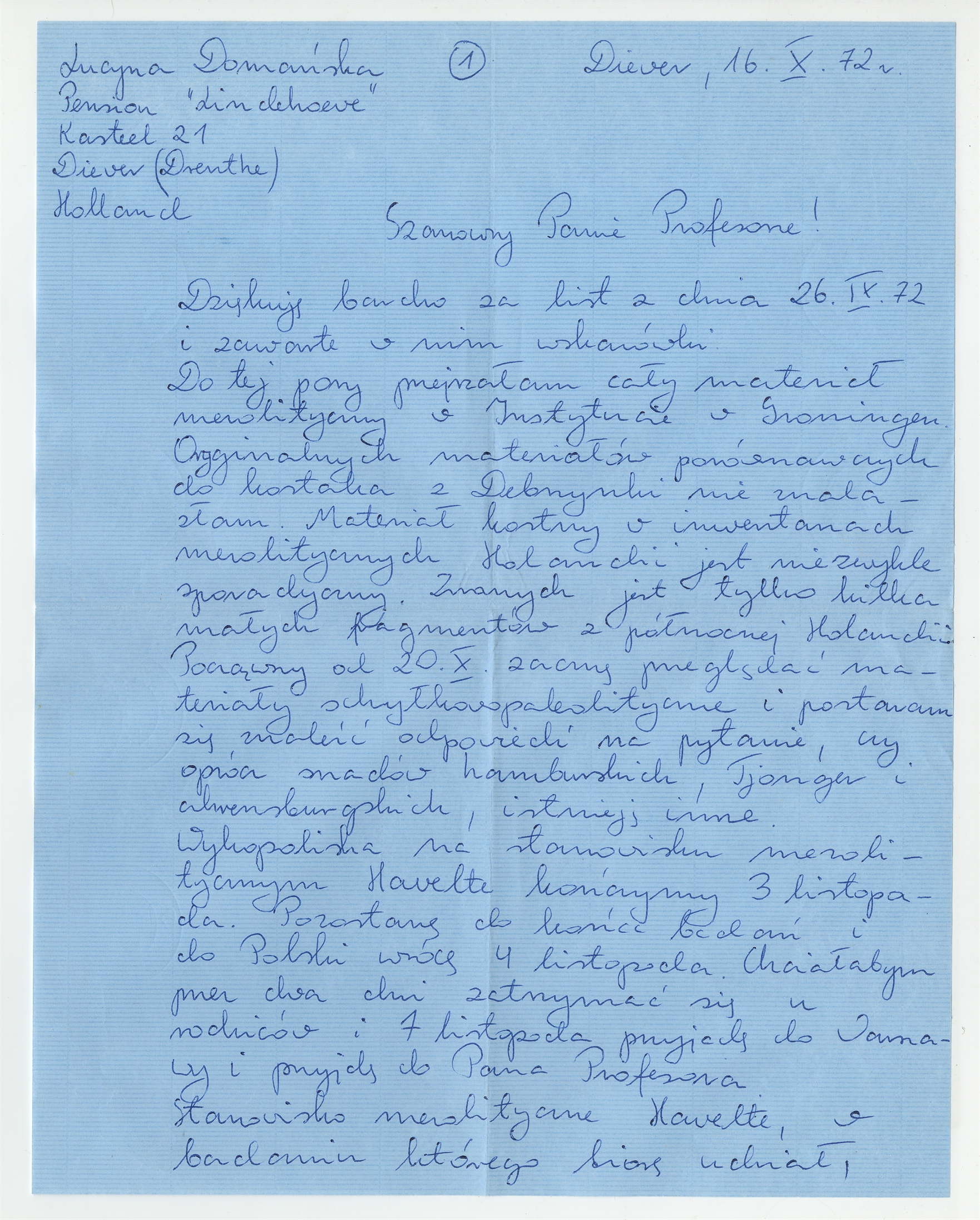 Rekopis listu Lucyny Domańskiej z dn. 16 X [19]72 r.