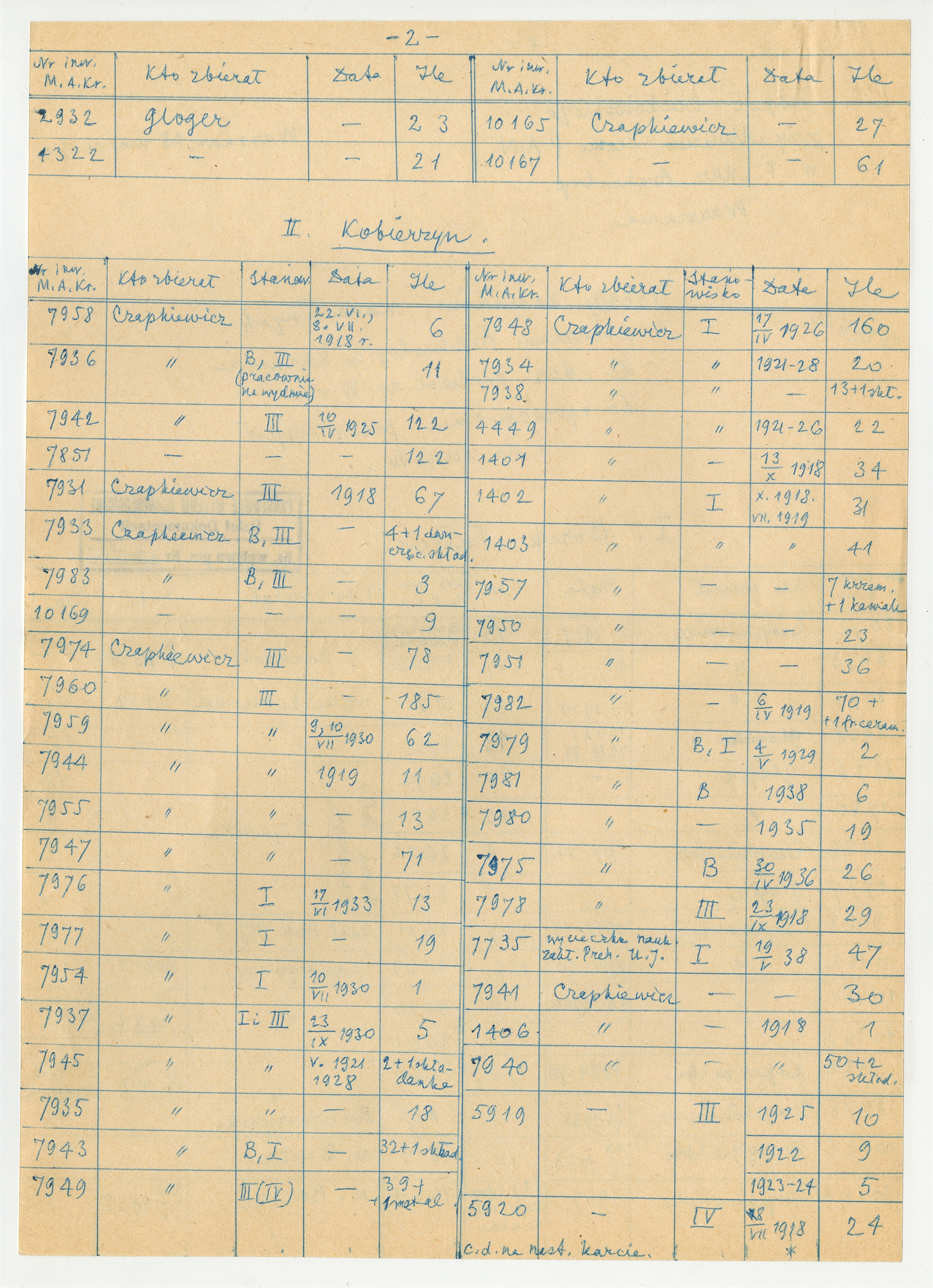 Rękopis Macieja Czarneckiego z dnia 28 marca 1969 roku - wykaz zabytków z Borku Fałęckeigo i Kobierzyna przekazanych z Muzeum Archeologicznego w Krakowie do opracowania przez Zespól Krukowskiego (cd)