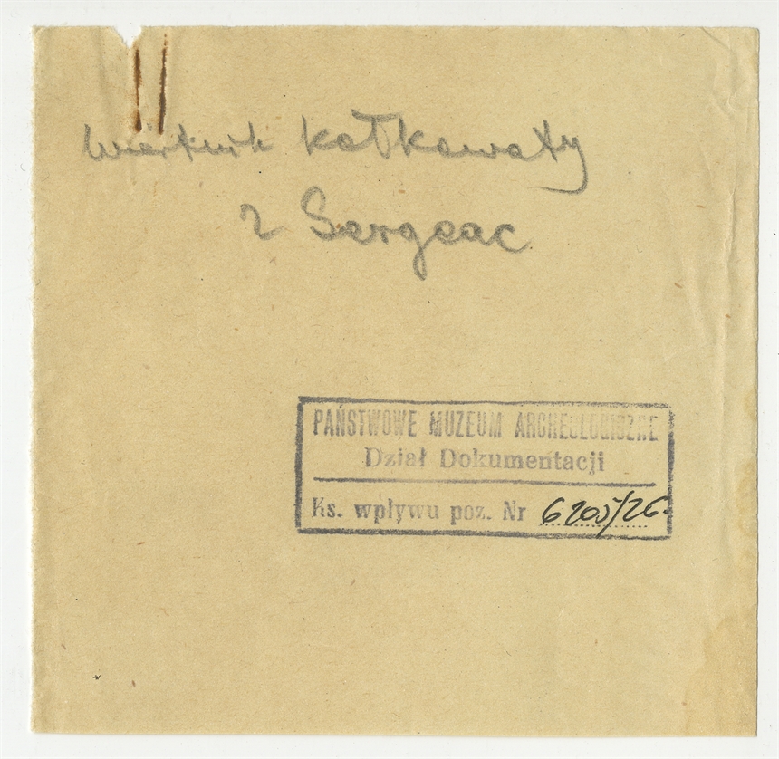 Rękopis - notatka z nazwą zabytku: " Wiertnik kałkowaty z Sergeac"