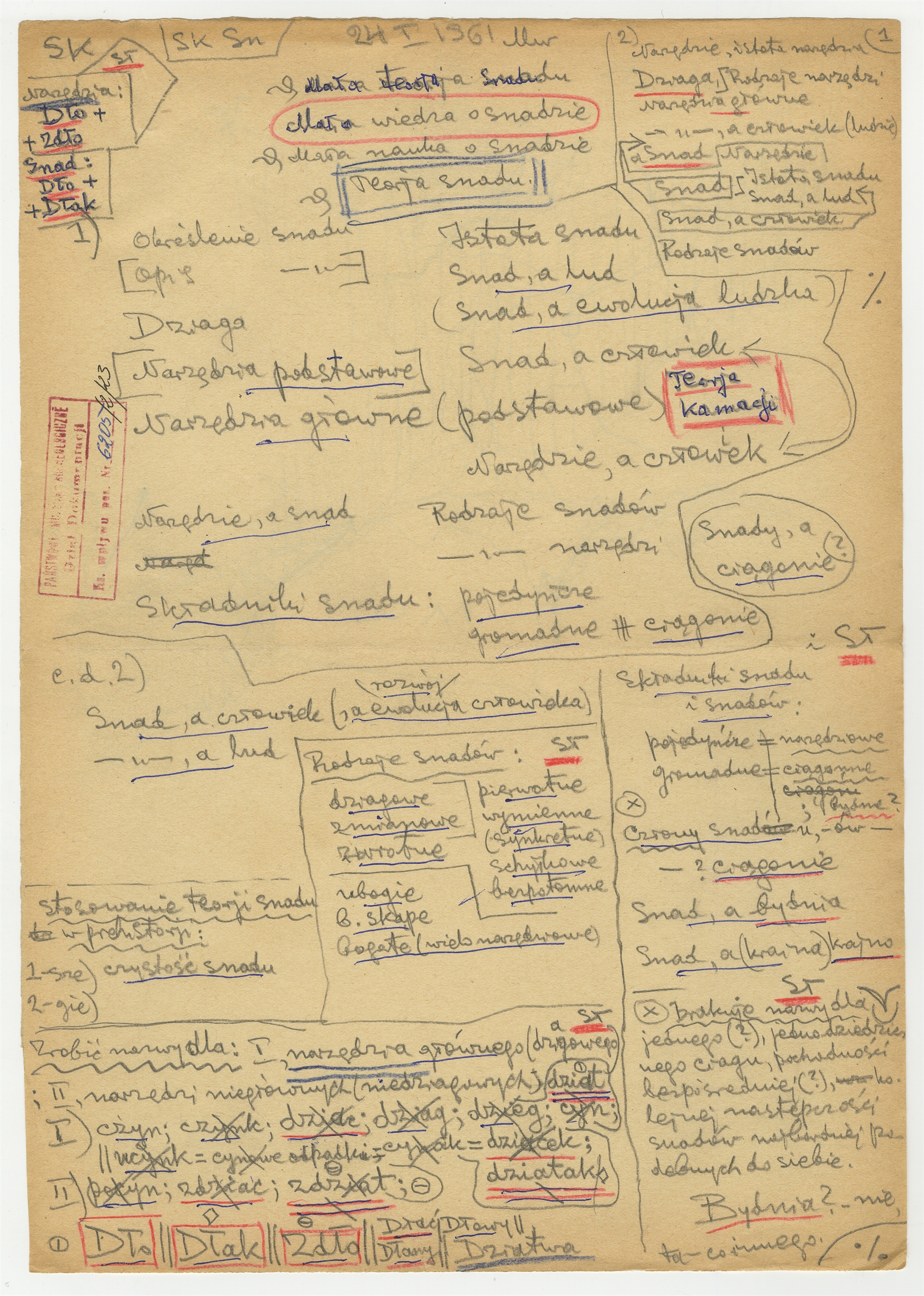 Rękopis - notatki naukowe Stefana Krukowskiego dotyczące "Teorii snadu" z dn. 24 I 1961 r.