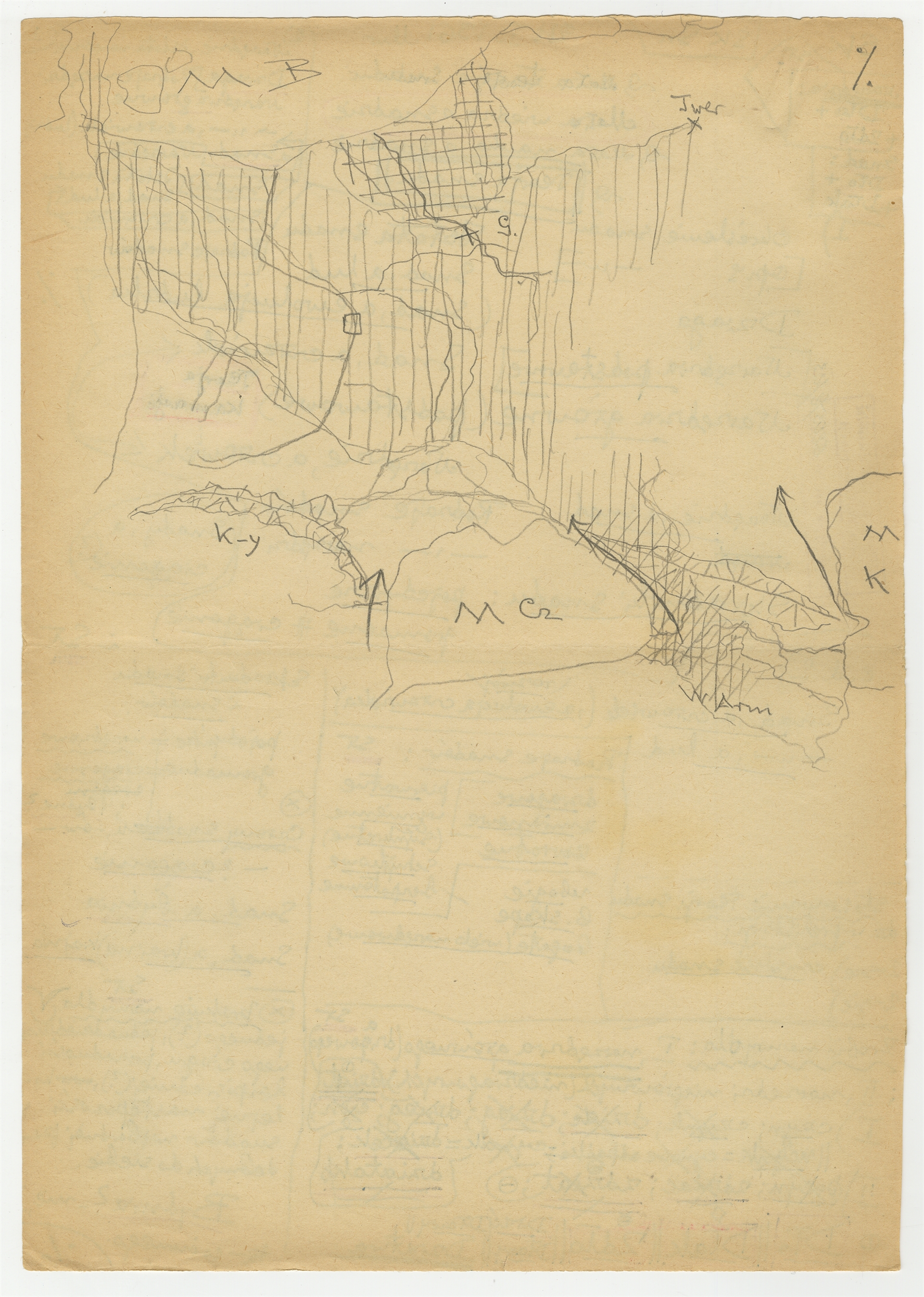 Rękopis - notatki naukowe Stefana Krukowskiego dotyczące "Teorii snadu" z dn. 24 I 1961 r. (cd- szkic mapki)