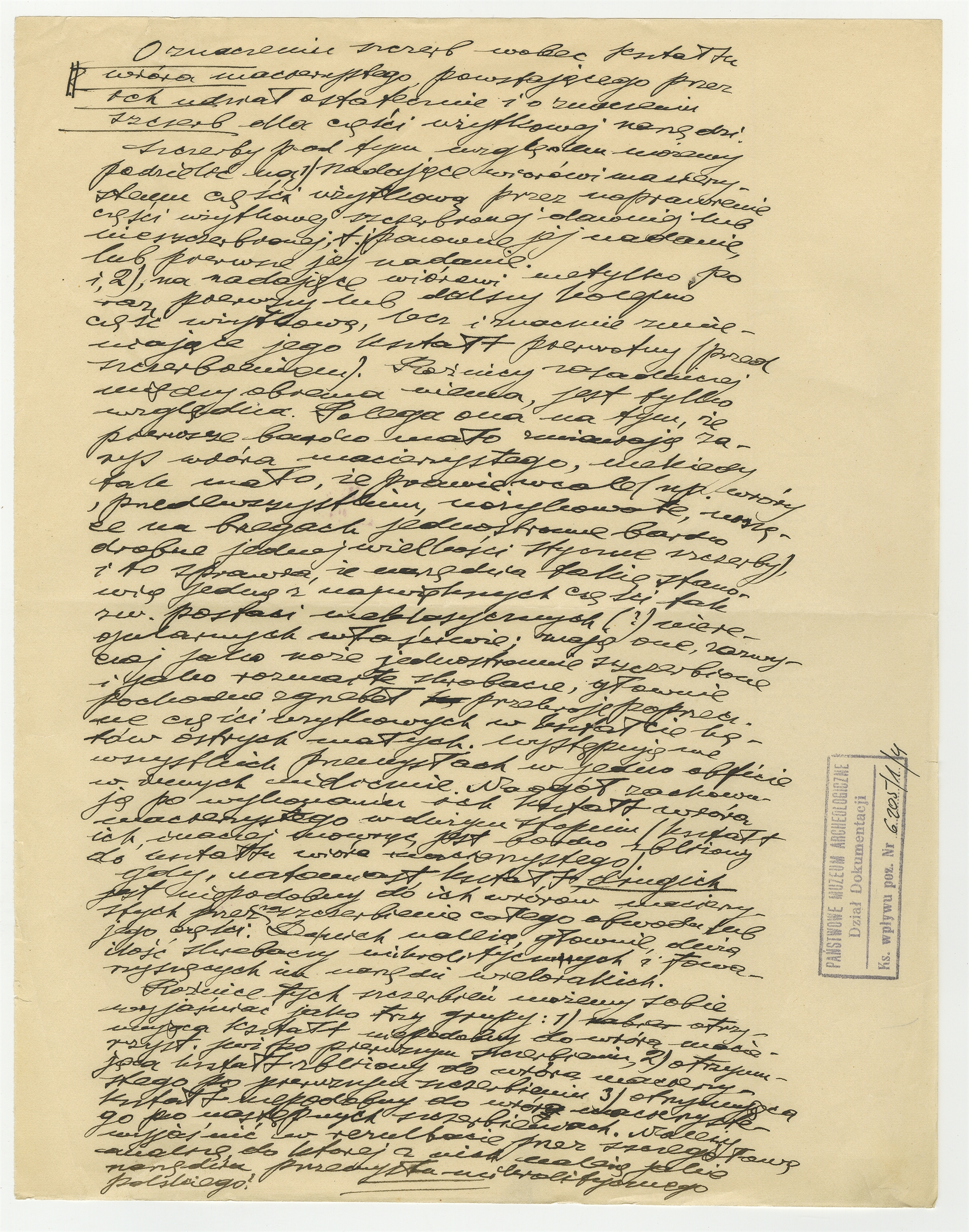 Rękopis notatki prof. Stefana Krukowskiego pt.: "O znaczeniu szczerb wobec kształtu wióra macierzystego powstającego przez ich udział ostatecznie i o znaczeniu szczerb dla części użytkowej narzędzi"