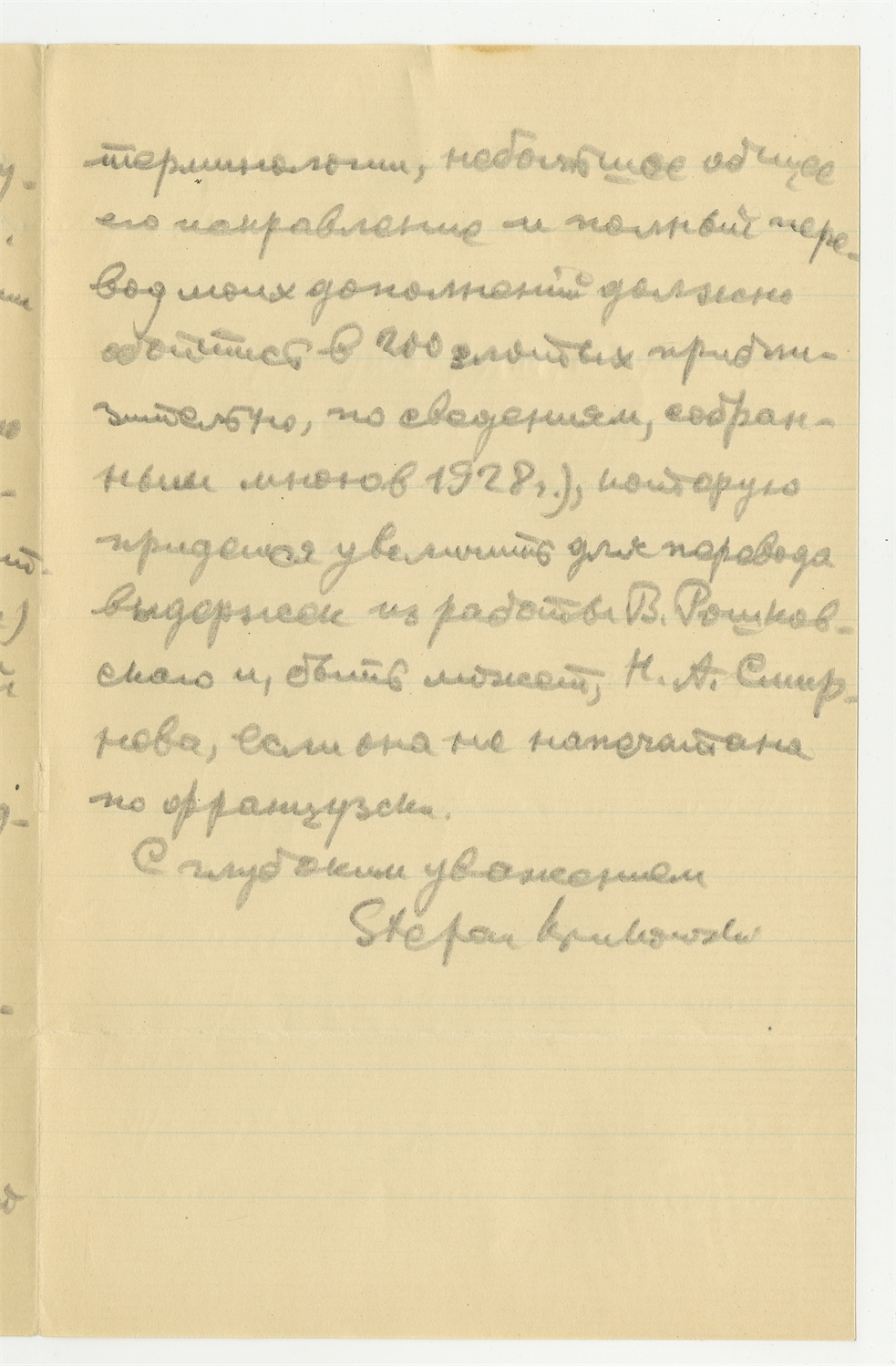 Rękopis - odpis listu Stefana Krukowskiego w języku rosyjskim do Dyrektora Muzeum Gruzji z dnia 19 X [19]29 roku (cd)