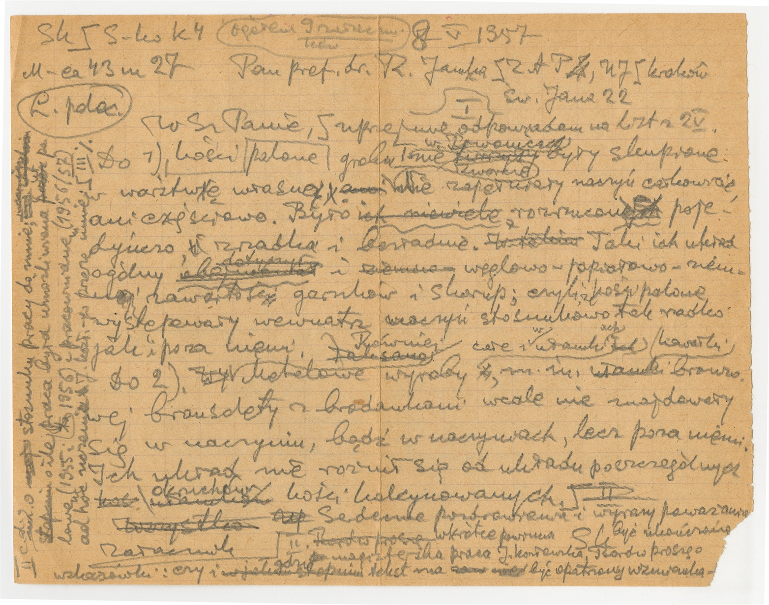 Rękopis pisma Rudolfa Jamki z dnia 2 V 1957 r. wraz z odpowiedzią prof. Stefana Krukowskiego (rękopis-brudnopis z dnia 8 V 1957 r.) (cd)