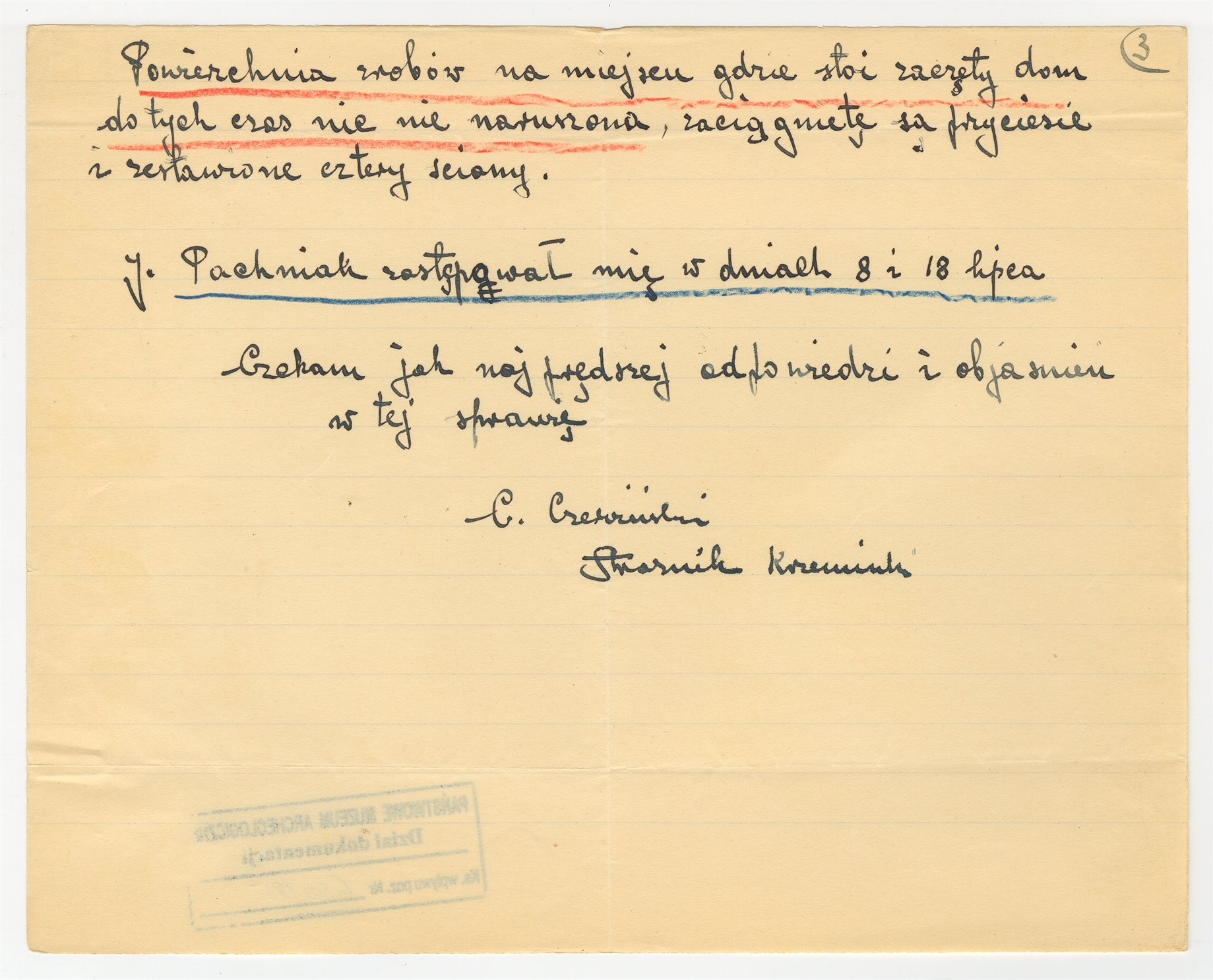 Rękopis - pismo C. Czerwińskiego do prof. Stefana Krukowskiego Krzemionki 23 VII 1935 r. - "Powierzchnia zrobów na miejscu…"