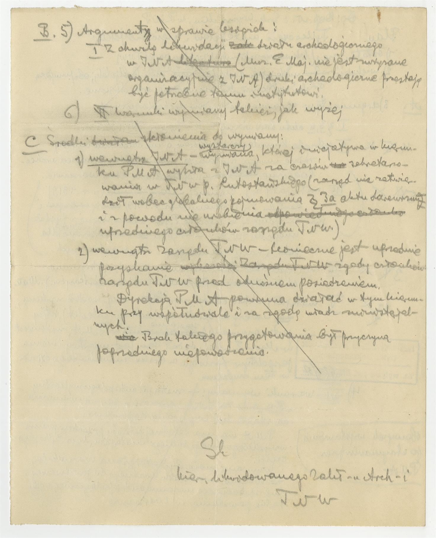 Rękopis planu pisma Stefana Kukowskiego Kierownika Zakładu Archeologii I.N.A. T.N.W. do Dyrektora Departamentu Nauki i Szkół Wyższych Ministerstwa Wyznań Religijnych i Oświecenia Publicznego w sprawie w sprawie przekazania zbiorów archeoloicznych z INA TNW do Państwowego Muzeum Archeologicznego - strona 2
