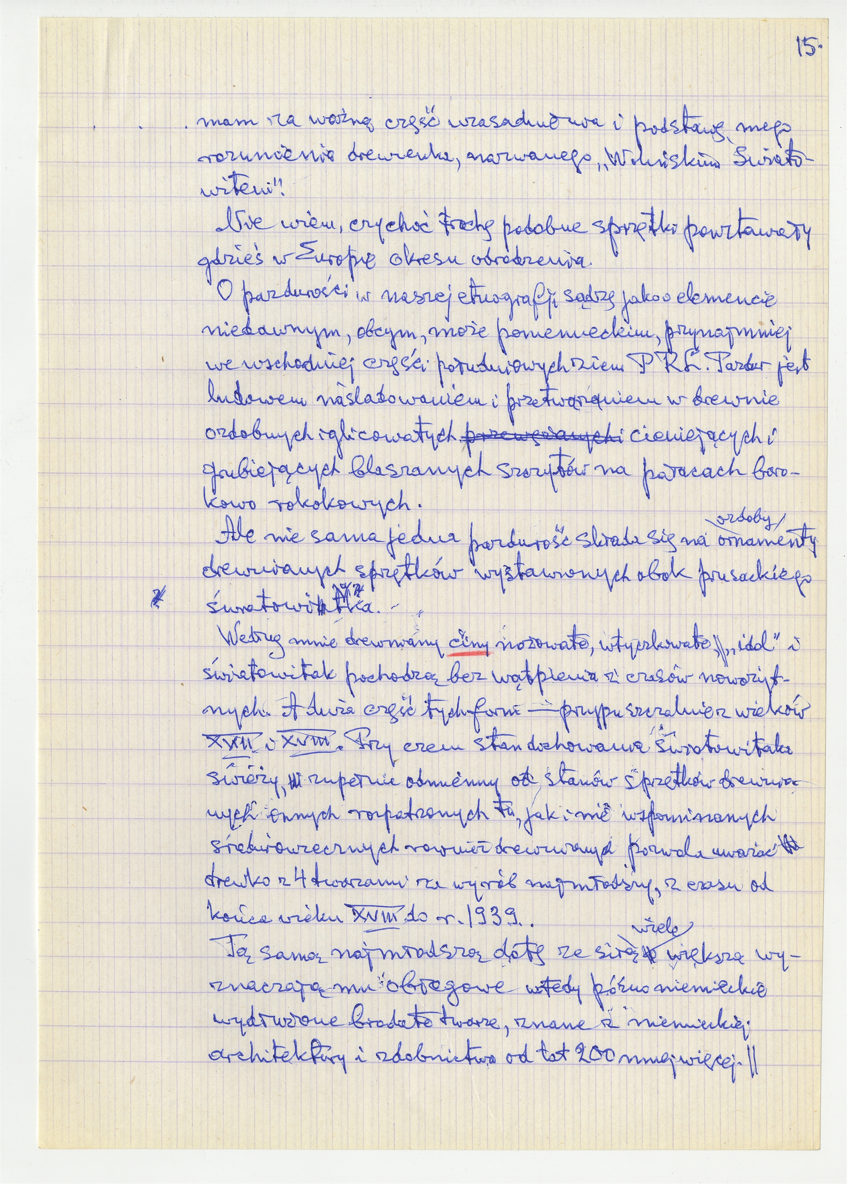 Rękopis pracy pt. "Prusacki Światowitak [do Kam 74]" (wersja 5) - strona 15: "(…) mam za ważną część uzasadnienia i podstawę mego rozumienia (…)"