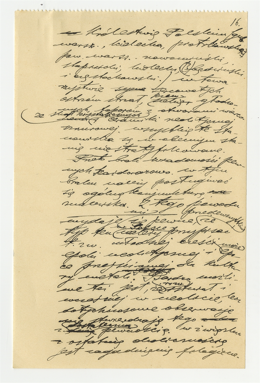 Rękopis pracy pt. "Skrobacz i nóż. Monografja z dziedziny paleotechnologji" - strona 16: "(…) Królewstwie Polskim (…)"