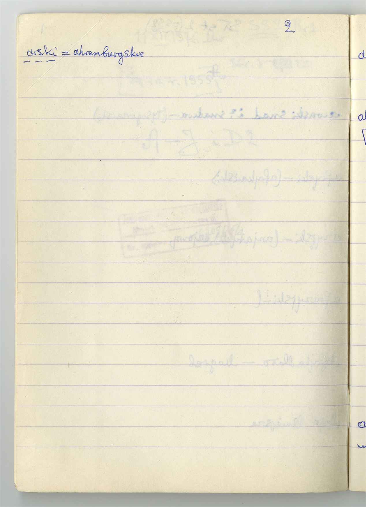 Rękopis słownika sporządzony w zeszycie w linię zatytułowany "Zumia stosowana Br. 1 A-J i D2 s. 1-120" - strona 3: hasła słownikowe na literę A c.d. (autorska strona 2)