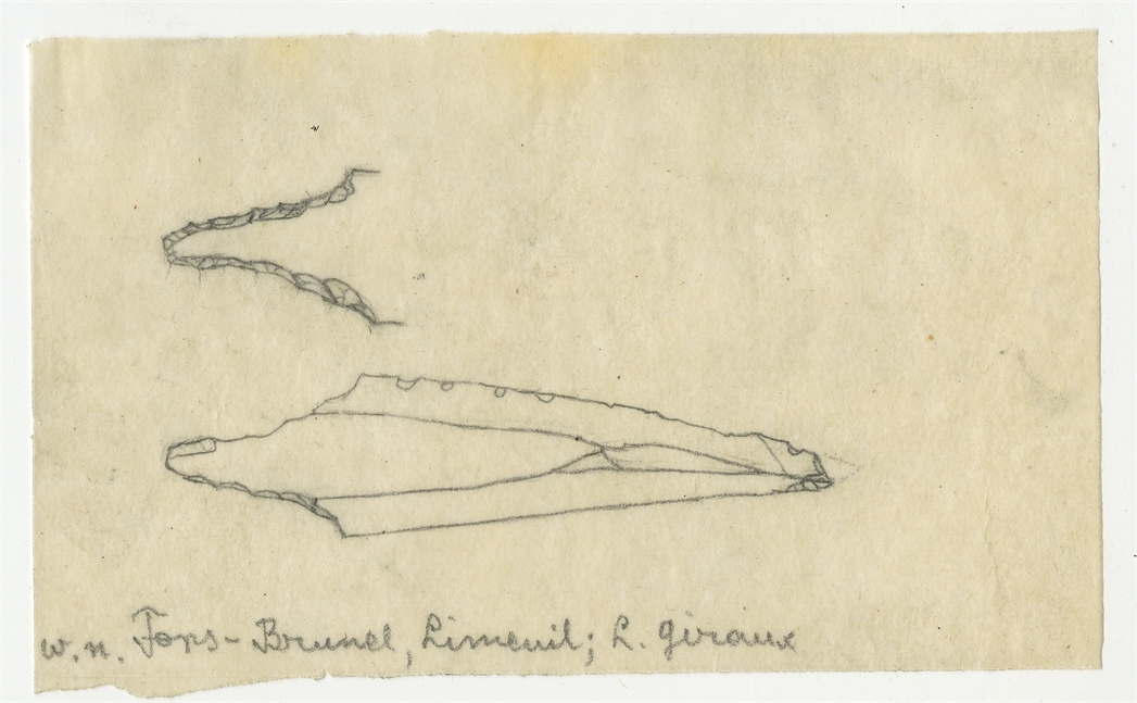 Rysunek zabytku krzemiennego z Fons-Brunel Limenil (w ołówku) z kolekcji L. Giraux.