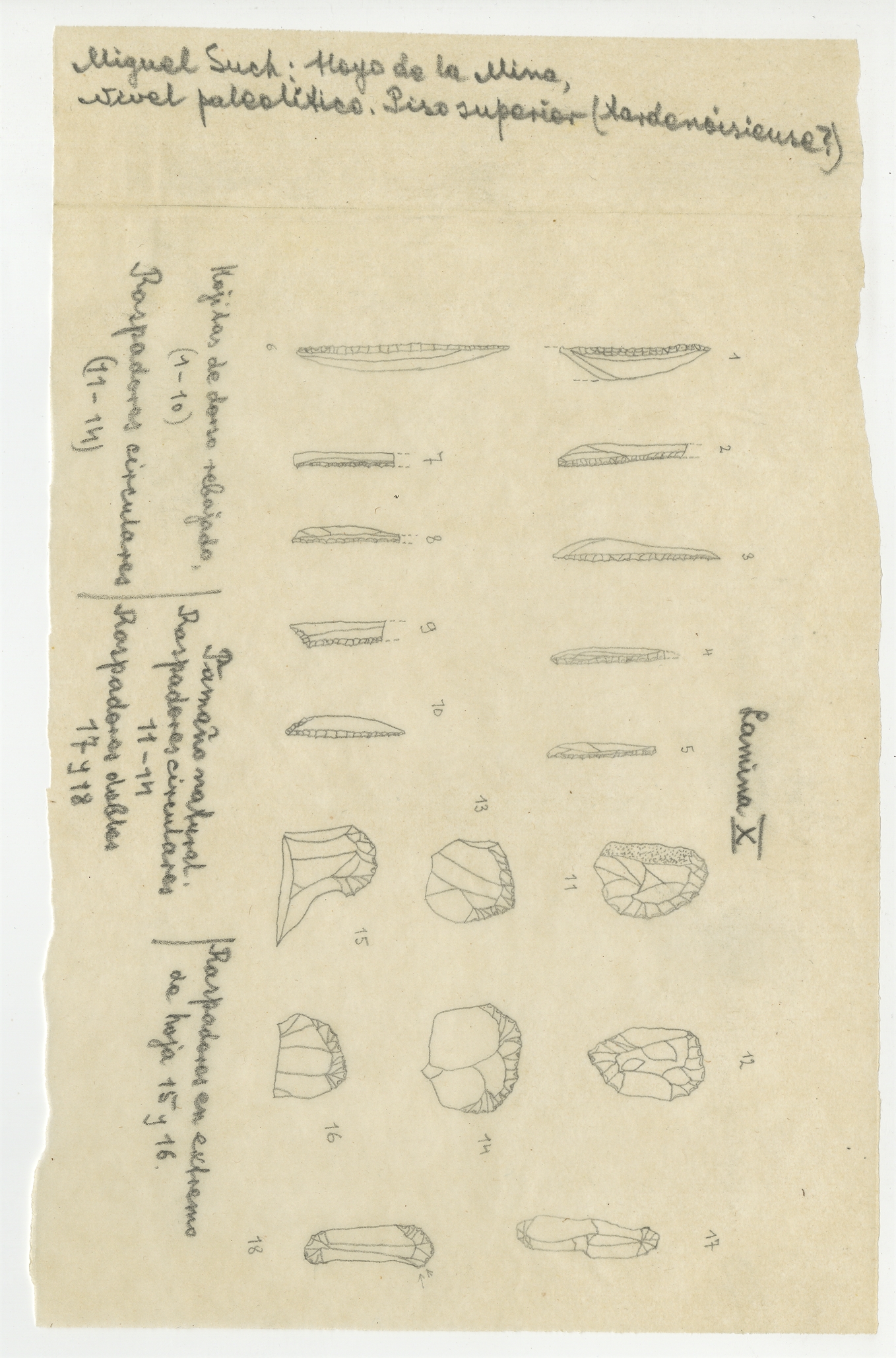 Rysunki - kopie zabytków kościanych i krzemiennych z publikacji Miguela Such'a "Hayo de la Mina". Tablica VII