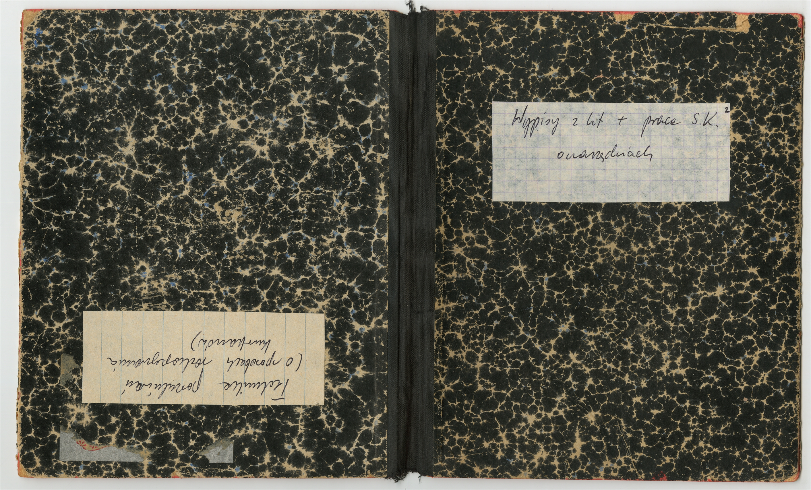 Zeszyt z rękopisem pracy o narzędziach - strona 1: okładka zeszytu z opisem jego zawartości ręką NN