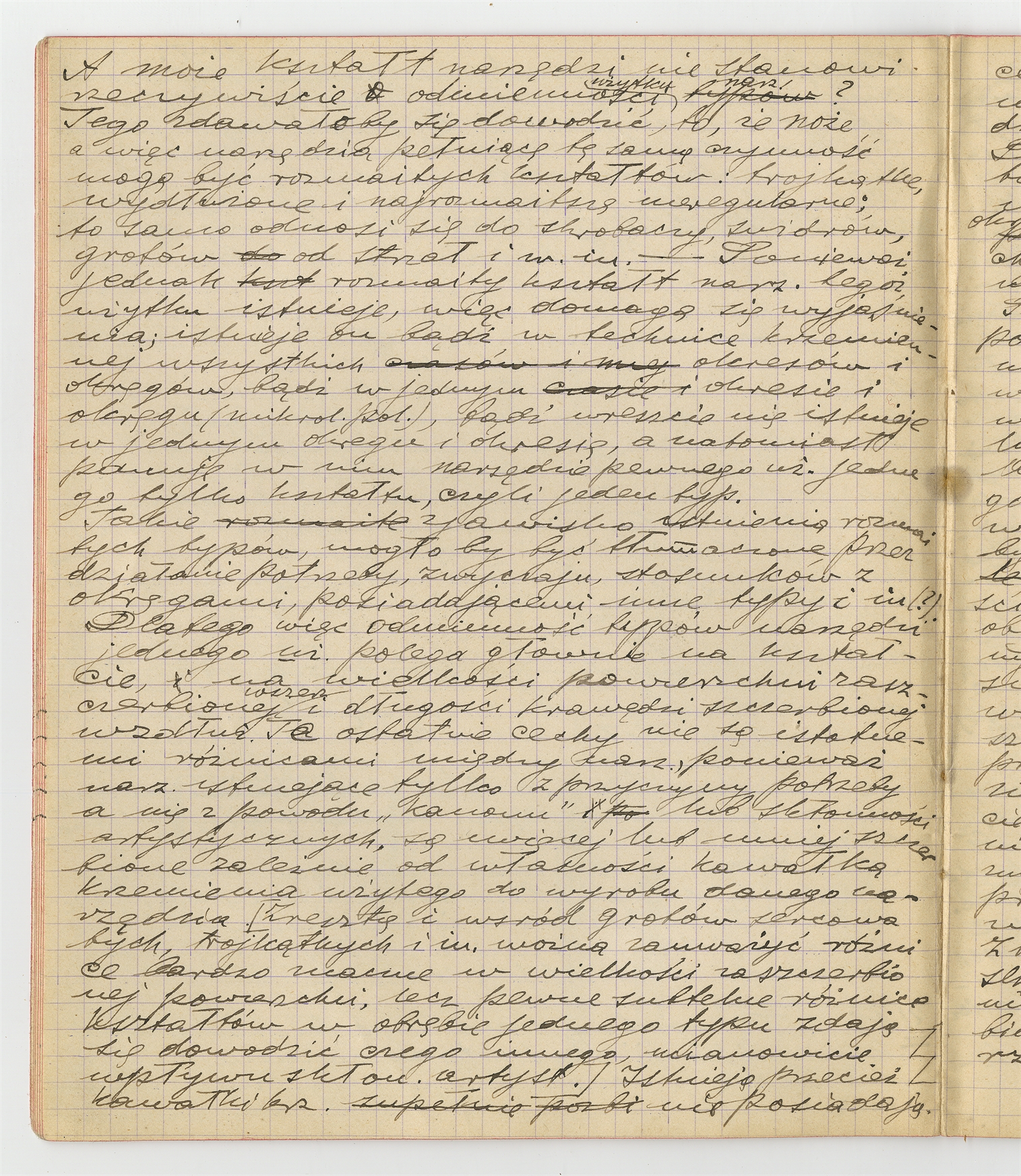 Zeszyt z rękopisem pracy o narzędziach - strona 13: treść pracy S. Krukowskiego (bez tytułu): "A może kształt narzędzi nie stanowi..."