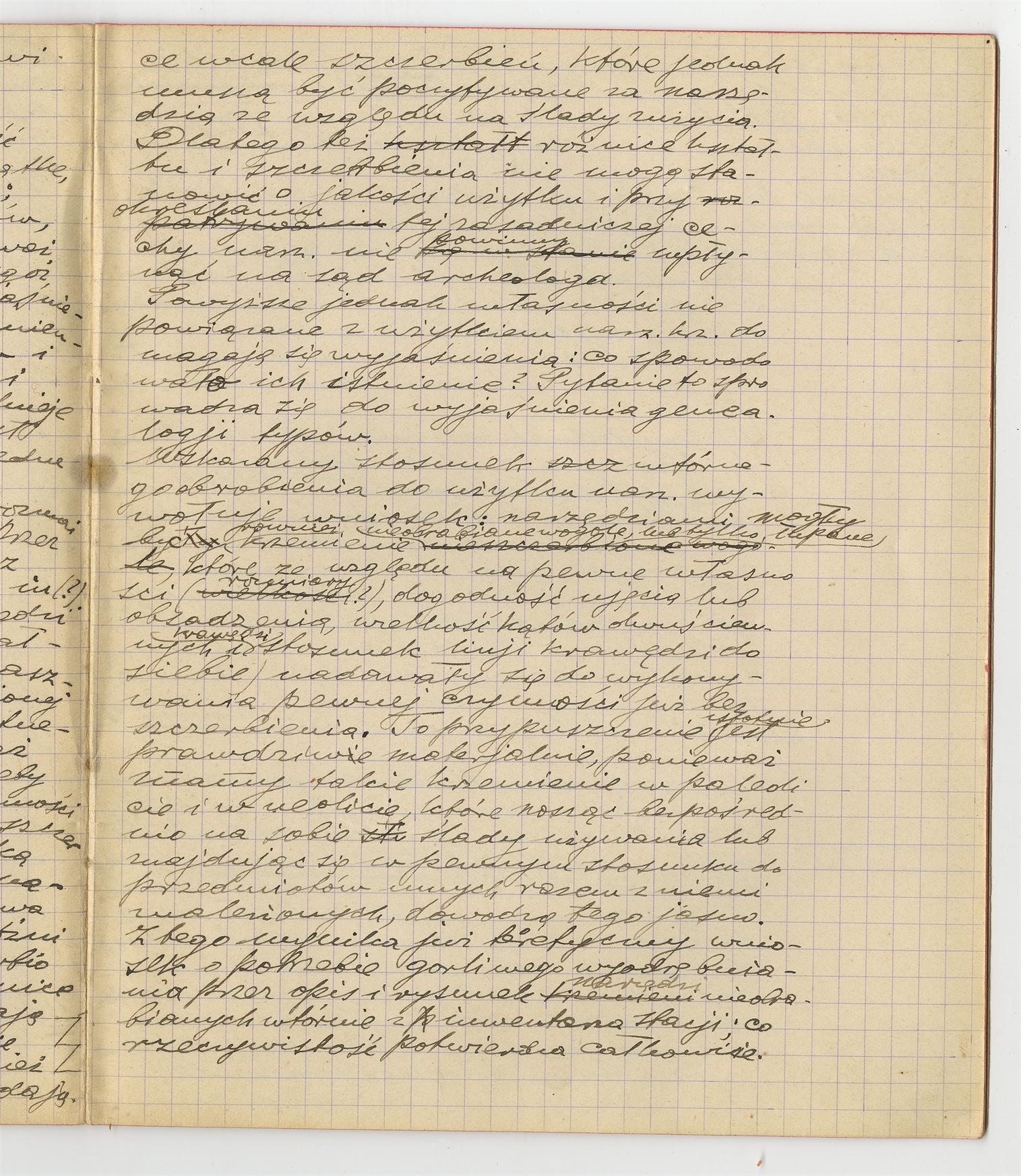 Zeszyt z rękopisem pracy o narzędziach - strona 14: treść pracy S. Krukowskiego (bez tytułu): "Dlatego też różnice kształtu..."