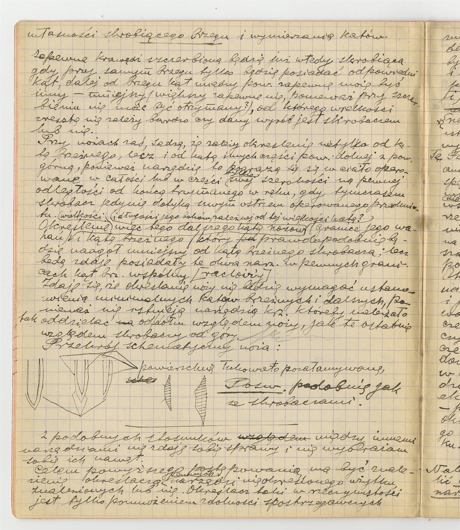 Zeszyt z rękopisem pracy o narzędziach - strona 9: treść pracy S. Krukowskiego (bez tytułu): "Zapewne krawędź szczerbiona..."