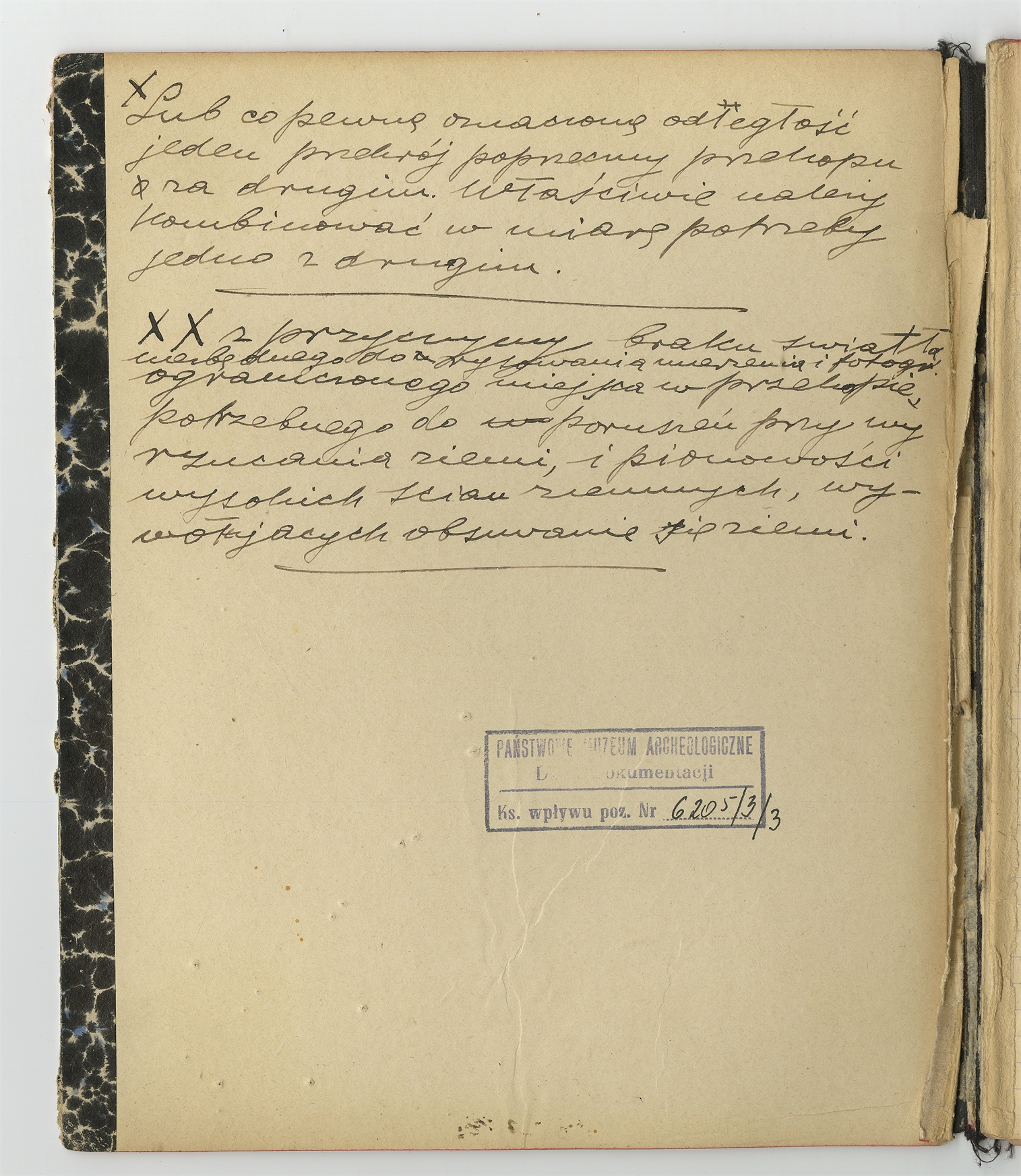 Zeszyt z rękopisem pracy pt. "Technika poszukiwań" - strona 2: odwrotna strona okładki z dwoma fragmentami tekstu stanowiącymi uzupełnienienie treści pracy
